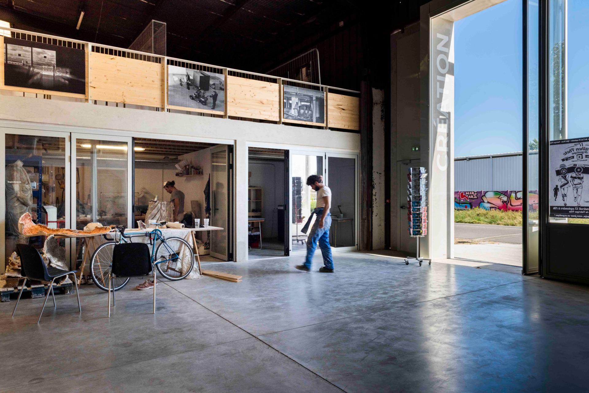 Today, it is a crossed architecture, an old sheet metal shed of 4000 m2, on the quays of the Garonne in Bordeaux, almost industrial wasteland, discovered at the end of almost twenty years of existence and after seven moves, a place permeable to ideas, rain, as to walkers, opened by huge doors of sliding workshops. A frugal architectural space, sober, redesigned based on wood, honeycomb concrete, mixed wood-concrete structure assuming a humble posture in front of the elements the collective spaces live with the seasons. In fact, it is perhaps primarily a collective organization, 100 workers who divide themselves into 600 m2 of offices, 800 m2 of workshops, a horizontal organization, politically and spatially, plural in its identities intertwined in a living cooperation and source of wealth. Density - complementarity - diversity that allow the artist to evolve in a swarm of initiatives, cooperation, knowledge and tools of productions that give him the power and agility to regain possession of the means of his existence.