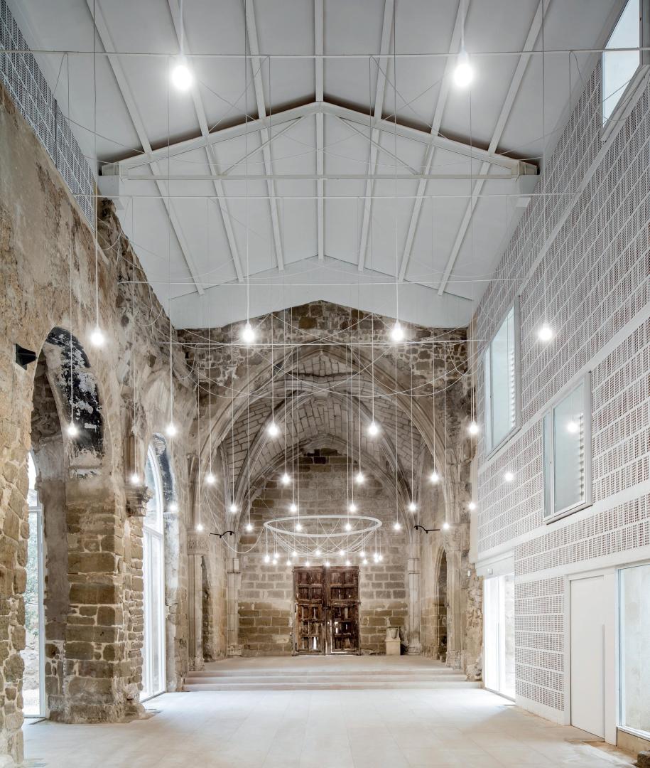 In the town of Vilanova de la Barca there was an abandoned Church which was damaged and in ruins since the 1936 Civil War bombing. This project proposed the refurbishing of this space, desacralizing it and recovering it for the Community. This new building was designed to be a new common multiple uses space so it could be used for cultural and social events. The design kept in mind the origins of the space, so that it hold this mystical atmosphere recalling the image of Northern Europe churches or the wide rooms of the medieval castles.
