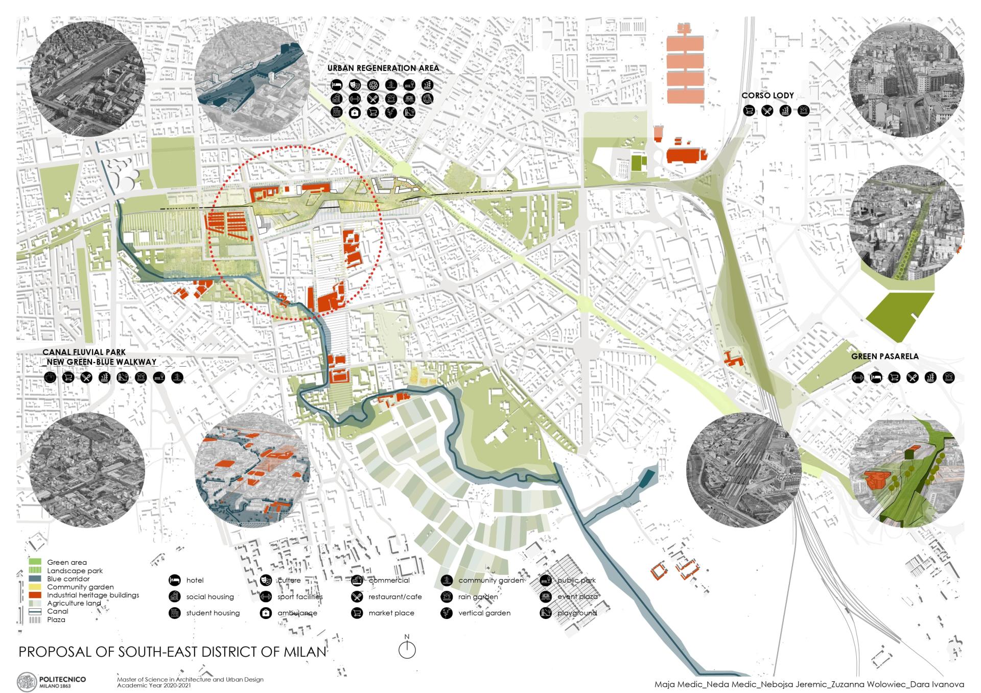 Analysis of the urban structure of Milan shows that a significant number of parks, agricultural land and water bodies are present in the outskirts of the city, while inside the dense inner parts the disbalance between the built structure and nature is highly present. Moreover, there is a prominent number of declined industrial sites, which not only produce the ecological adversities but also create extensive voids or disconnections within the urban fabric.