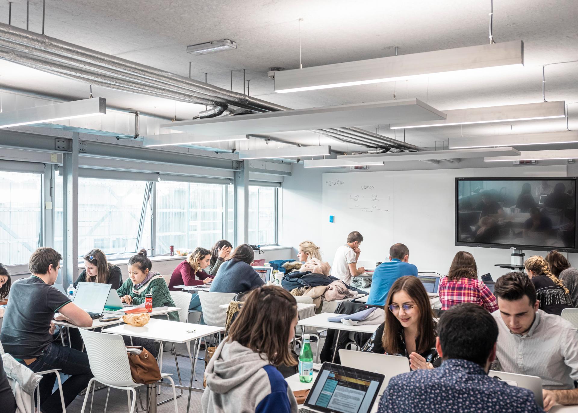 All of the rooms are equipped with large screens and video-conferencing systems, which also makes it possible to combine course formats, conferences and events.