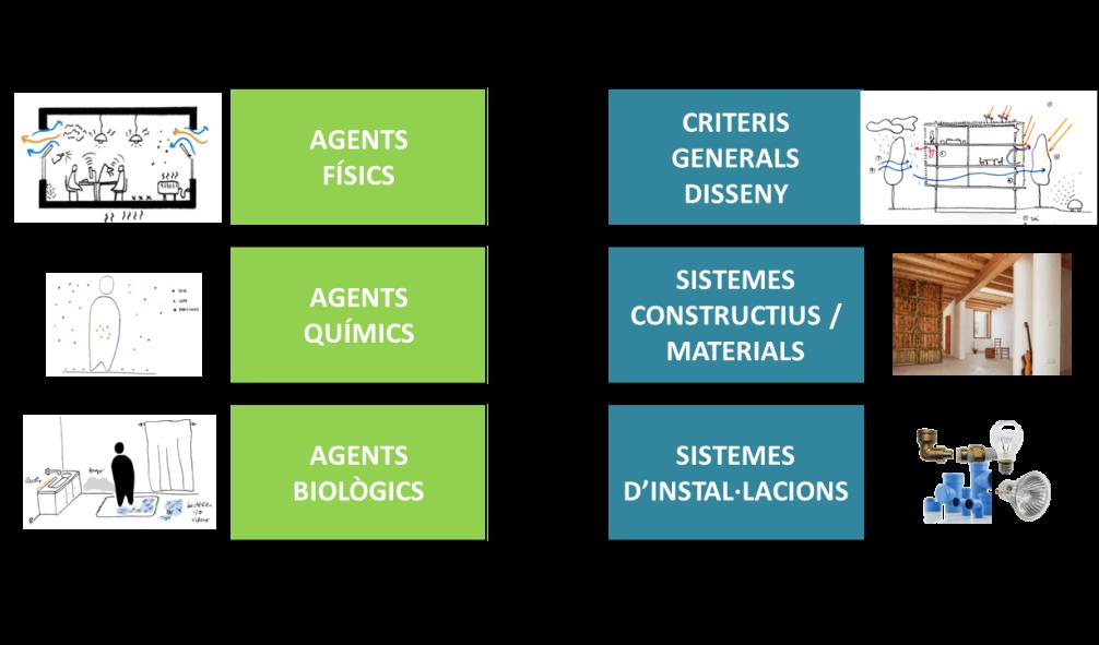 The recommendations set different levels: general and design criteria (bioclimatism), material selection criteria and building systems (isolation, coatings, wood works, paints, etc.), recommendations on supply systems (power, acclimatization, supplies, water,...). To keep an optimal habitability during the full lifetime of the building some guidelines on final user usage and maintenance: recommendations on house cleaning products, guidelines on aeration, efficient use of passive measures on climate control (shades, green houses, balconies, etc.)