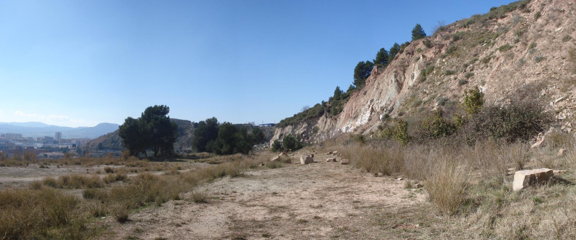The path runs through a highly degraded natural space on the northern area of Igualada. The area was subject to an intense extractive activity to remove the gypsum from its subsoil (Claret and Pelfort gypsum mines). Once this activity ceased, the area was used as a municipal waste transfer station. Towards the late 70s this activity also ceased and the area was abandoned without any type of recovering or mending action.