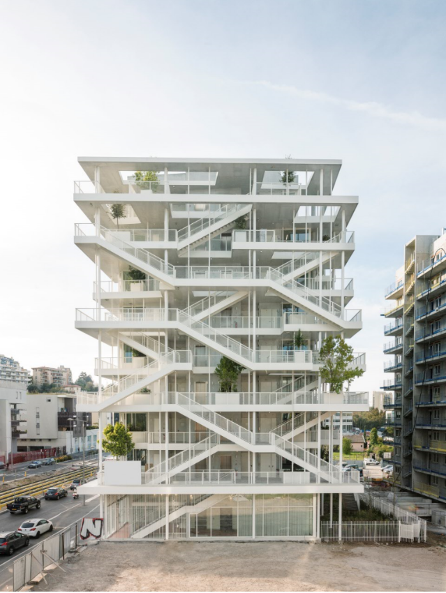 The scenery of outside circulation spaces are inciting people to walk stairs, to meet on the terraces, livening up the entire building from the outside. This design allows a new art of living between exterior and interior.