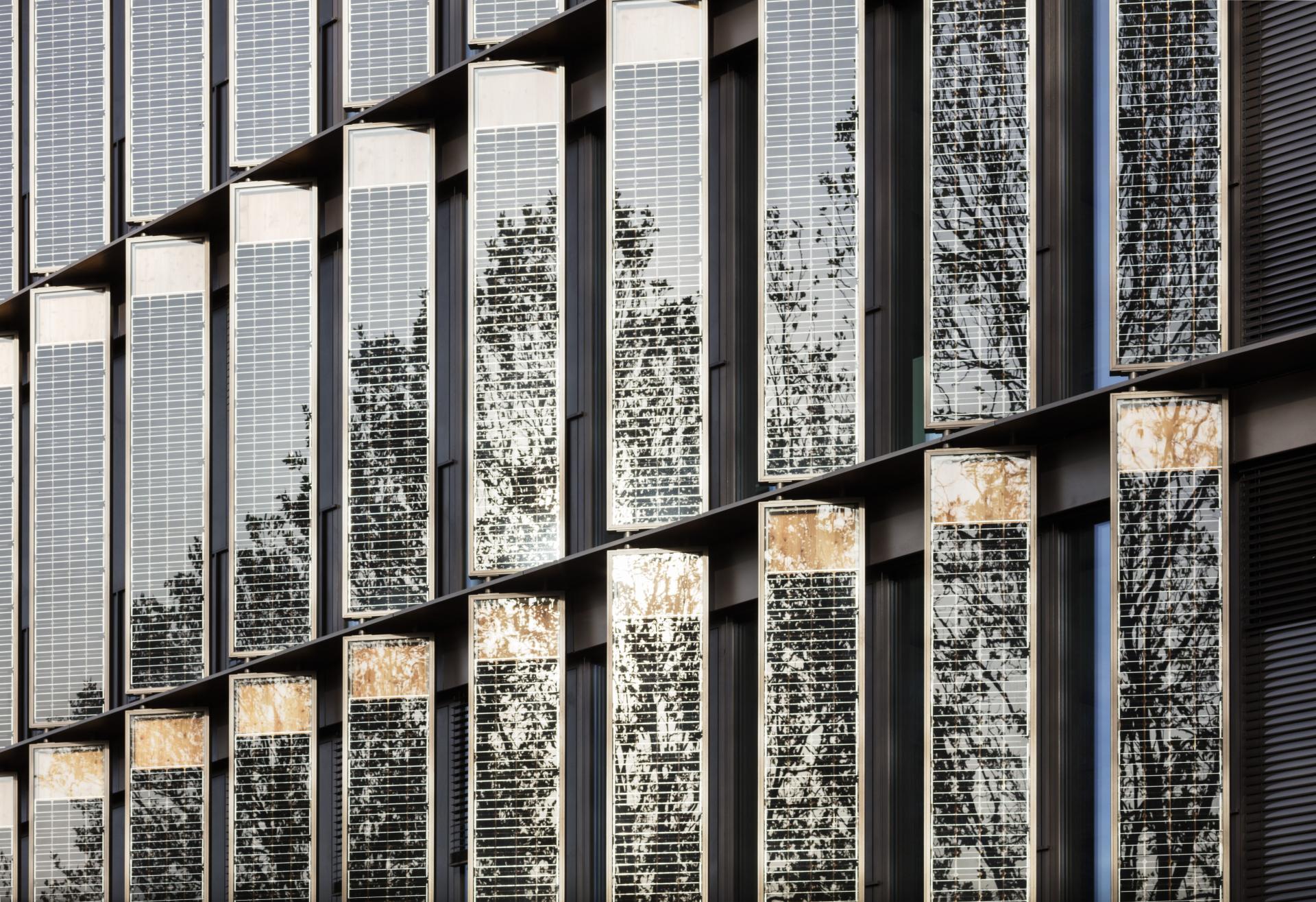 The energy-optimised façade with an area of approx. 13,000m² was realised in close cooperation with a metal construction company and a2-solar. The façade is equipped with metal elements folded outwards, into which the solar modules specially optimised by a2-solar were integrated.