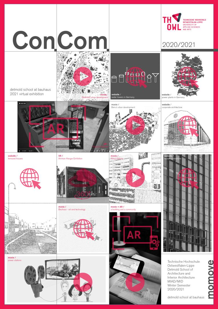 ConCom explored digital forms of ideation, documentation, design and dissemination to creatively use these potentials for the reuse and safeguard of the recent built environment, here infrastructure. Students conducted cross-cultural and cross-sectoral research in interdisciplinary and international teams. On display are websites, apps, short movies, films, as well as applications of 360-degree images, augmented and virtual reality. The 13 virtual exhibits demonstrate the students’ reflections and concerns towards the future sustainable design of the built environment, inspired by the lessons learnt from Modern Movement. Furthermore, ConCom MoMove represents a model for enhancing access to cultural heritage and inclusiveness by digitalising heritage infrastructure, transforming it into "green" infrastructure with a high social purpose.