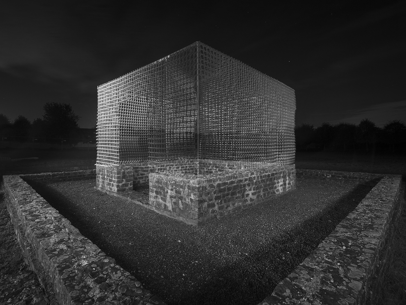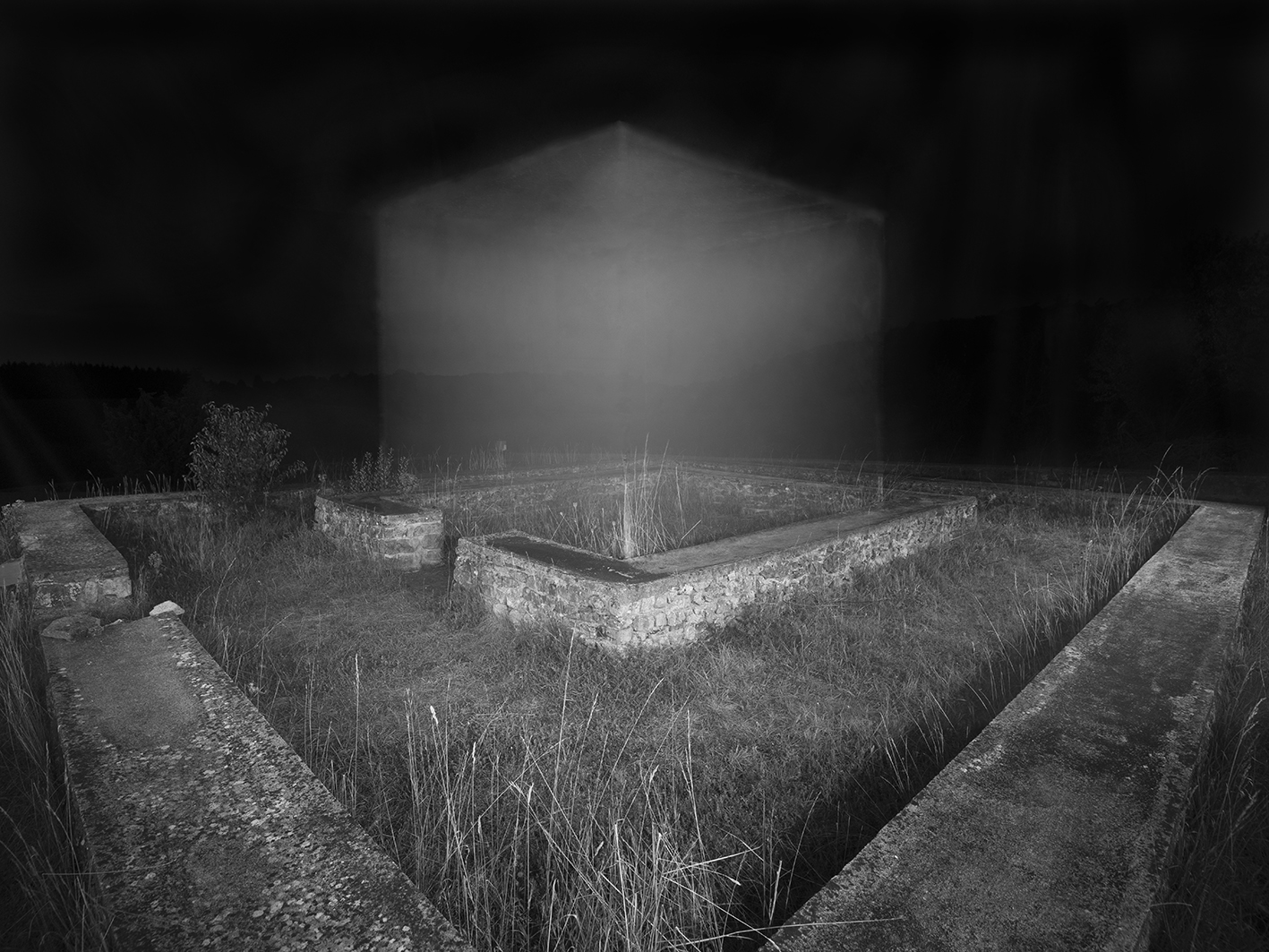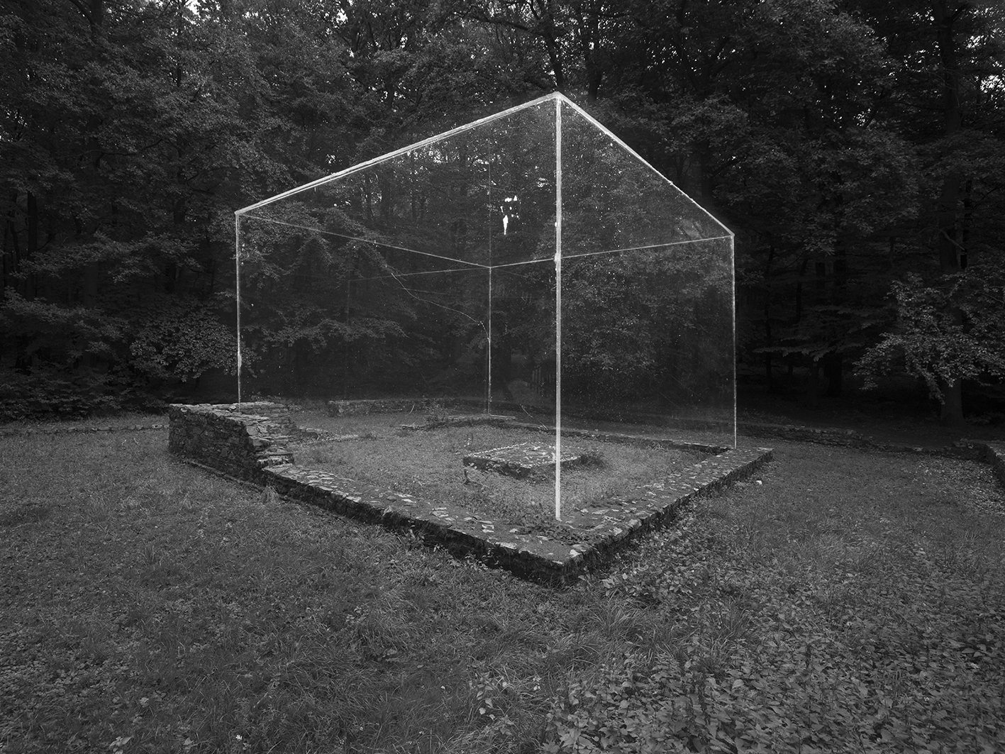 Recognizing recurring features in the shape of structural relics can open up perspectives that enable us to describe historical places in a different way than the description of their history of use suggests. Even if the material remains cannot be preserved in perpetuity, they will never really disappear in spatial, historical, social, and political perception. The theme of memory forms the core of my working method and captures existing events that are linked between time and place. The found structural legacies mark a spatial logic that is already available as an opening dimension. Through the emphasized spatial cubature, something is to be perceived that is ultimately only an illusionistic copy of the given dimensions of a floor plan. These markings direct and conspicuously point to found spatial situations. It is only through the material intervention that a change in the attitude of the way of looking at a seemingly meaningless environment becomes apparent. The volumetric models do not represent a ruthless appropriation towards the remains in general, but rather draw attention to the corresponding subject matter precisely through the precise artistic treatment of the site.