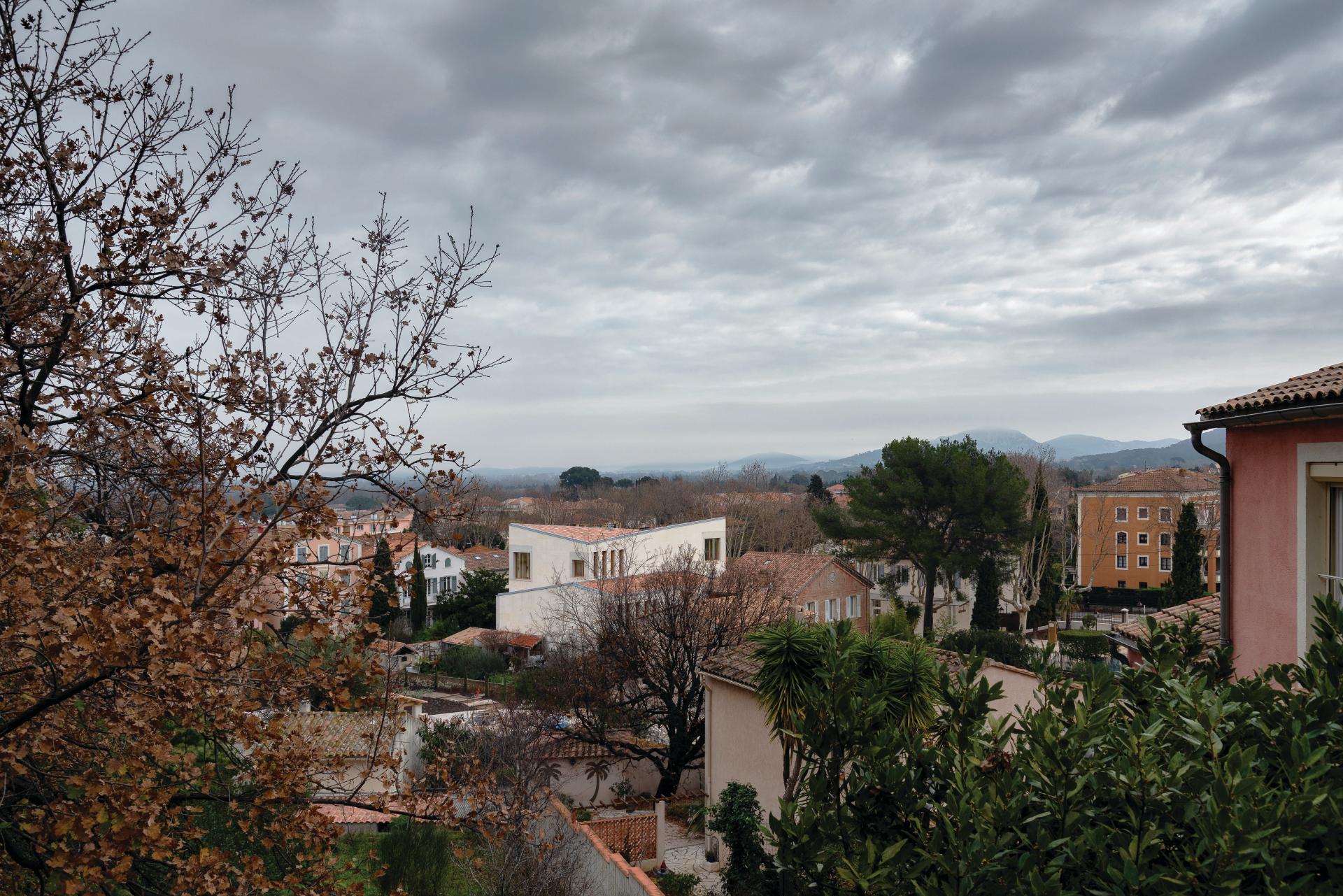 In its relationship with the site, the conservatory offers a first response to this contradictory demand that consists of creating a facility that is a both a bold symbol of public renewal and a discrete element of the historic residential fabric. The project is based on a double reading. From the hillsides or the city centre, it is perceived as an architecture that has been present for centuries. Its indented volume, sparsely pierced, associates it at the domestic scale with the large houses nearby, built with the same materials, clear mineral facades and tiled roofs. Meanwhile, in the tenuous space in the courtyard, the verticality of the conservatory contrasts with the low volume of the former school. The discovery of the unusual scale of the borings and the double-height front portico evoke a more monumental image of the facility and affirm its public nature.