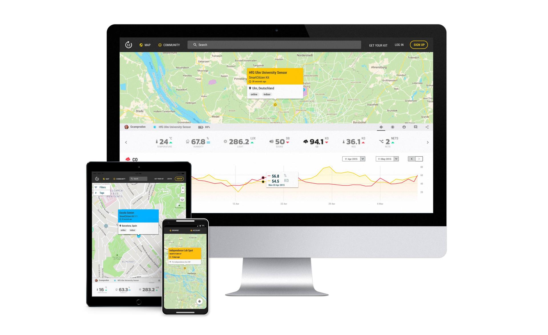 The rapidly increasing global urban population will necessitate new methods of participatory mediation in which urban citizens should be entitled to collect and gather their own data on their environment. Already, cities release huge levels of carbon emissions which have detrimental effects on air pollution and citizen health. The approach to Smart Citizen and its facilitation tools was to show how open-source hardware and software, digital maker practices and open-source design principles could be used effectively by local communities to appropriate their own technological sensing tools to make sense of their environment to address environmental issues concerning air, water, soil and sound pollution.The Smart Citizen Kit aims to be a simple tool to help citizens collect data and with with tools made available by the team, also make sense of the data in order to influence their urban environment. The kits contain the following sensors to enable this:
