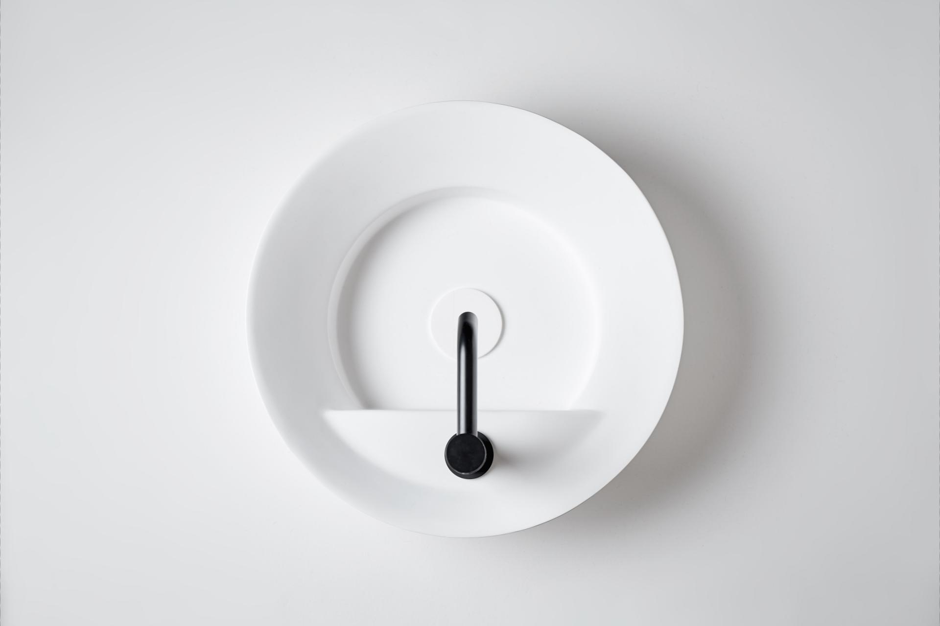 The differentiation in this basin lies in the way in which its expansive geometry is resolved together with the way in which the faucets are integrated throught its internal shelf, giving the possibility of using smaller faucets and allowing the user to place the basin on spaces of different sizes.