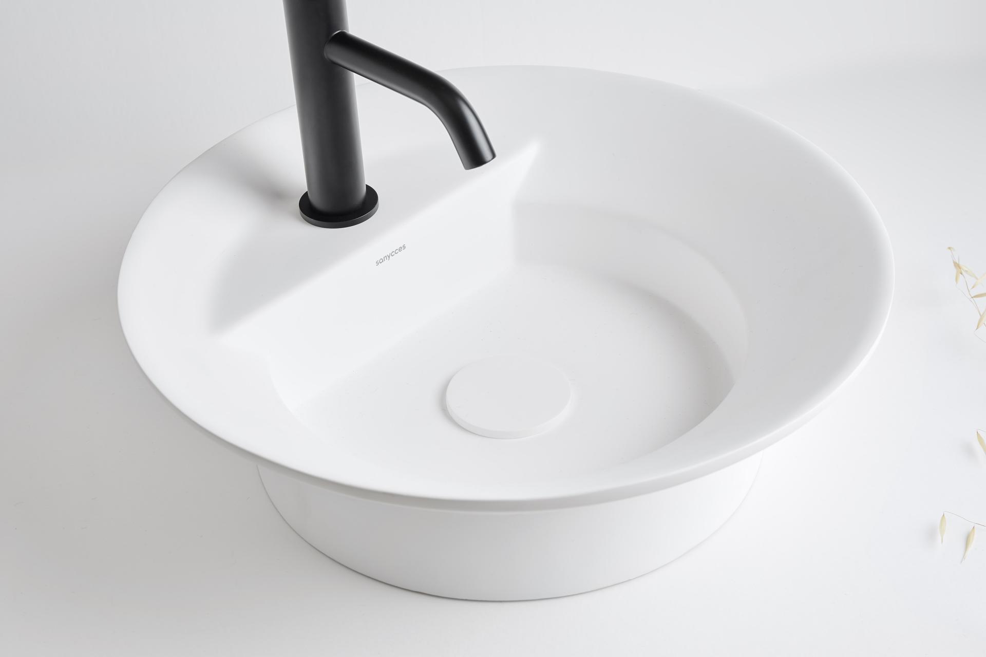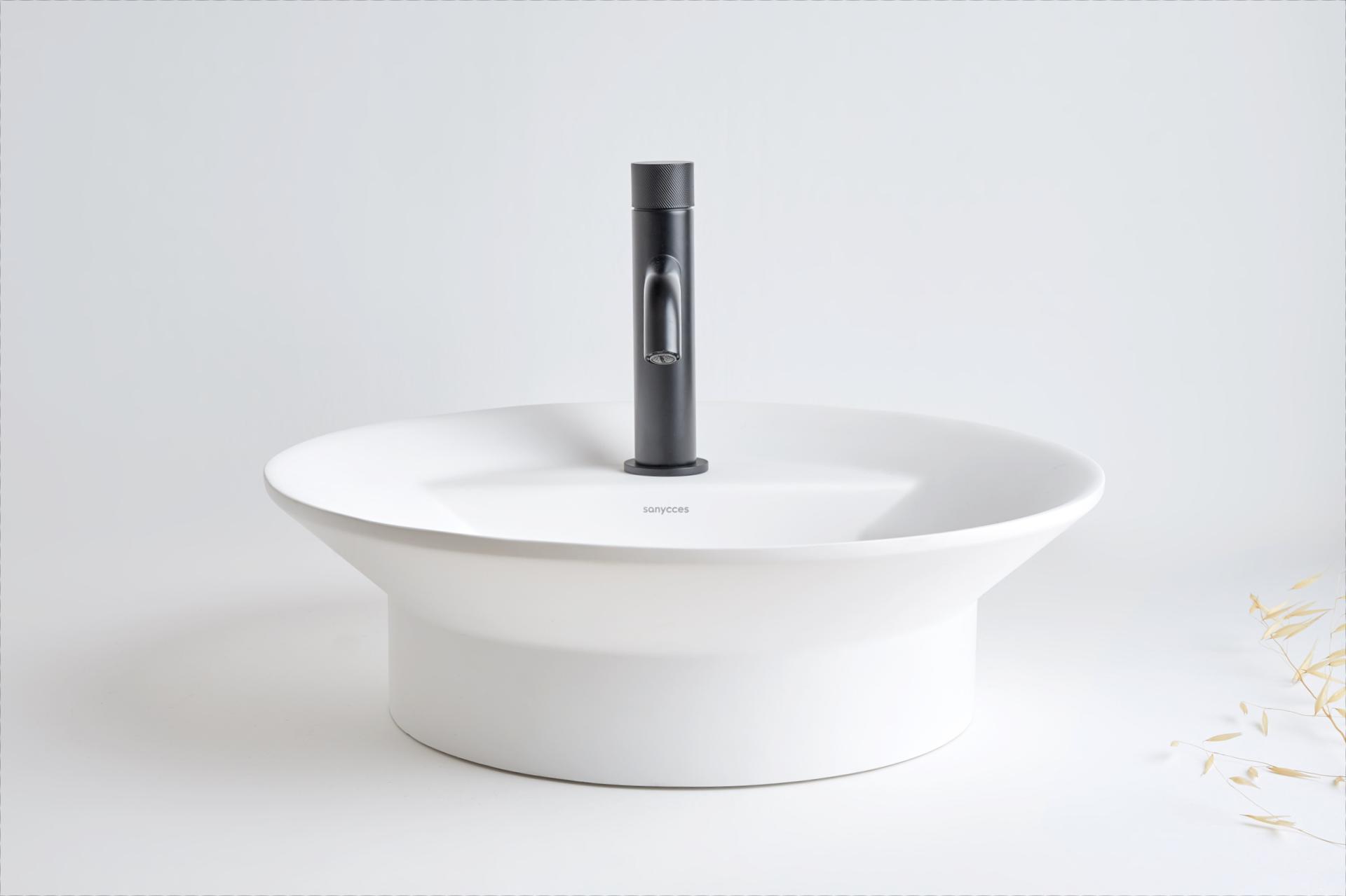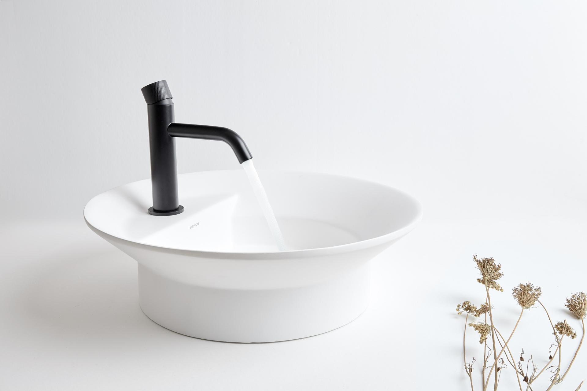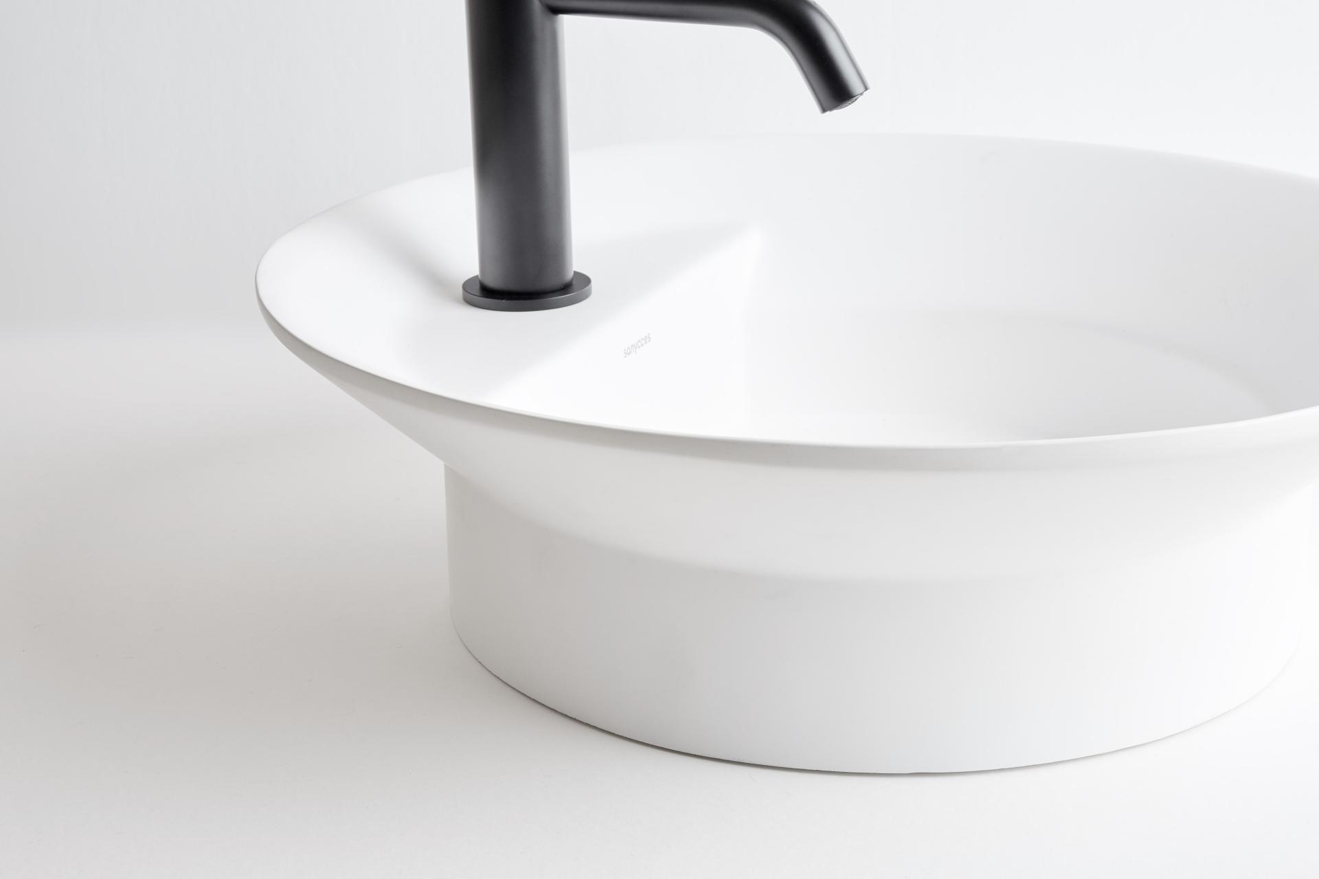With Sira it was seeked to create an expansive basin that even with a compact size, does not have the feeling of being closed off or small, but rather the opposite, inviting to be used and to interact with it. A washbasin with great character thanks to its changes in inclination and surfaces that seeks to give a sensation of spaciousness and space in reduced places, thanks to its small base, which allows a greater versatility.