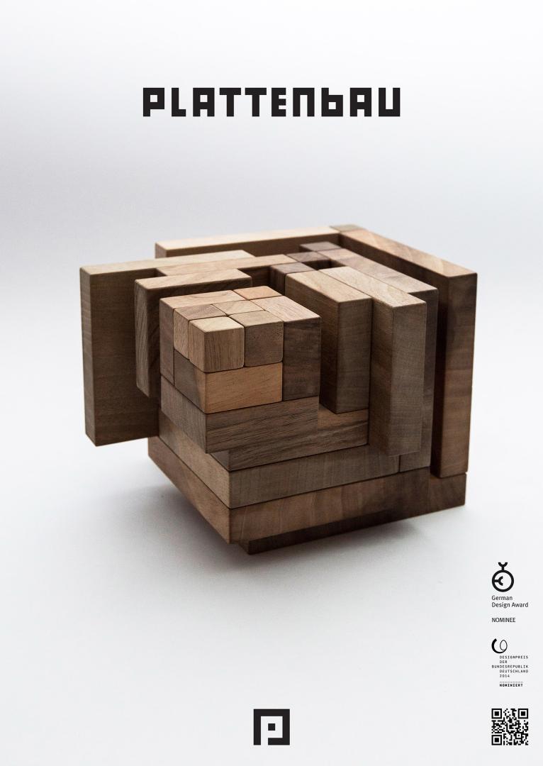 PLATTENBAU is a red dot award-winning design object. It consists of 25 ashlars which, when put together in the three spatial axes, form the shape of a cube. The modular system PLATTENBAU is to be understood as hardware for a holistic pedagogical concept that can be used in all phases of education and in all disciplines. A communication tool that expands understanding by the dimension of space - as a universal language. The pedagogical concept around the work- and visual tool PLATTENBAU is based on the constant reinterpretation and reassembly of abstract ashlars in a spatial structure and an imagination gained from aesthetic experience.
