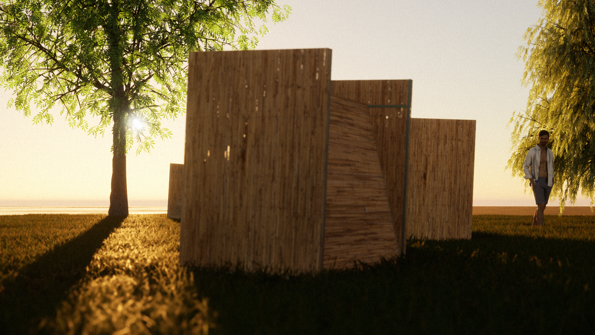 The refracted light coming through the reed panels creates an interesting light play and feels natural.