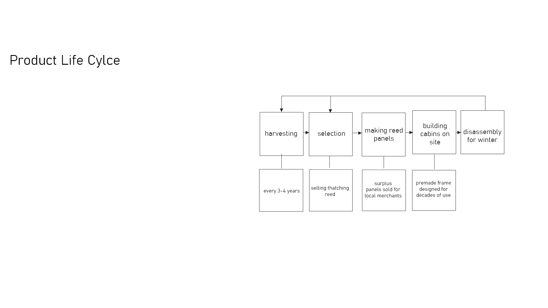Use of reed has a history in Europe but somehow it almost got lost. Reinventing the places and ways of using reed is a neccessary. Having such a valuable renewable material and not using it is a mistake. My project only uses reed in a simple ways but alternative and more experimental uses would be important in the future.