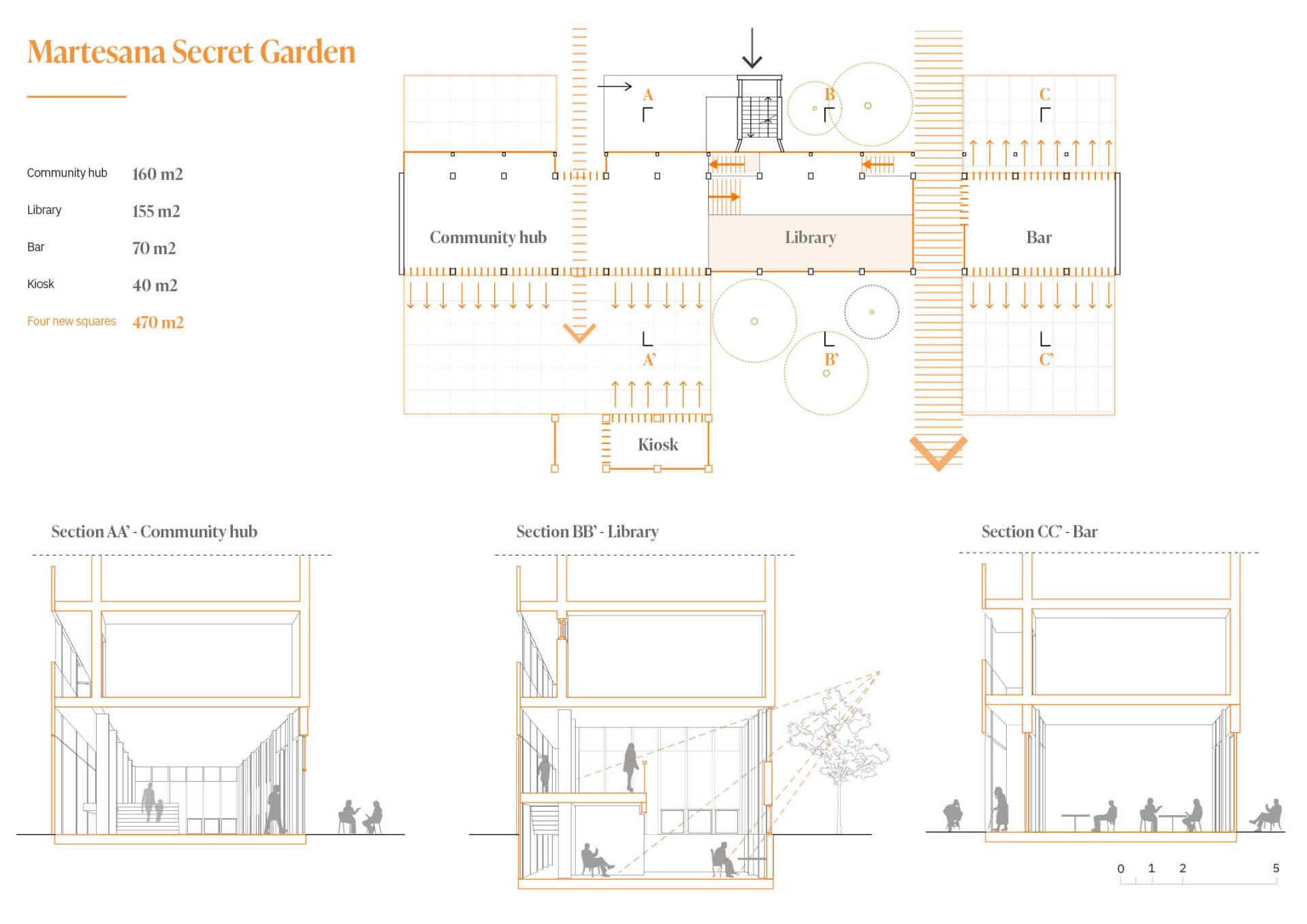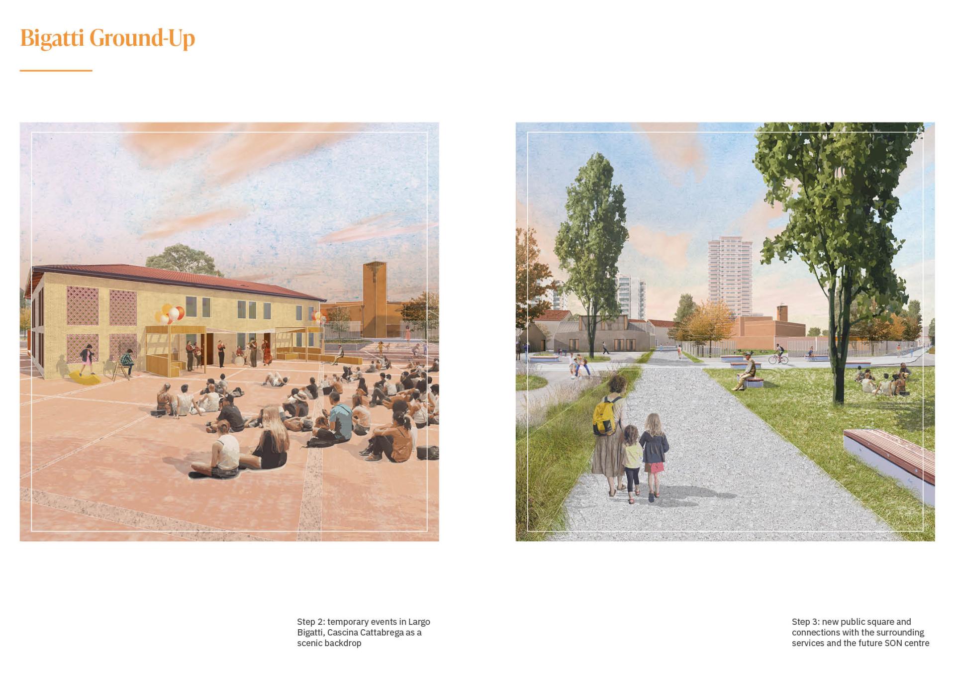 The project reflects on the role of public spaces as common grounds. A good design of the public realm is essential for a healthy urban environment and citizens. It must combine formal placemaking components with informal participatory spaces to create places that foster deep connections with the community. Every space preserves memories and fragments that become materials of a new present, an engine of regeneration. The architect must narrate the city to its inhabitants through innovative formulas, showing the hidden potential and inspiring steps of change.