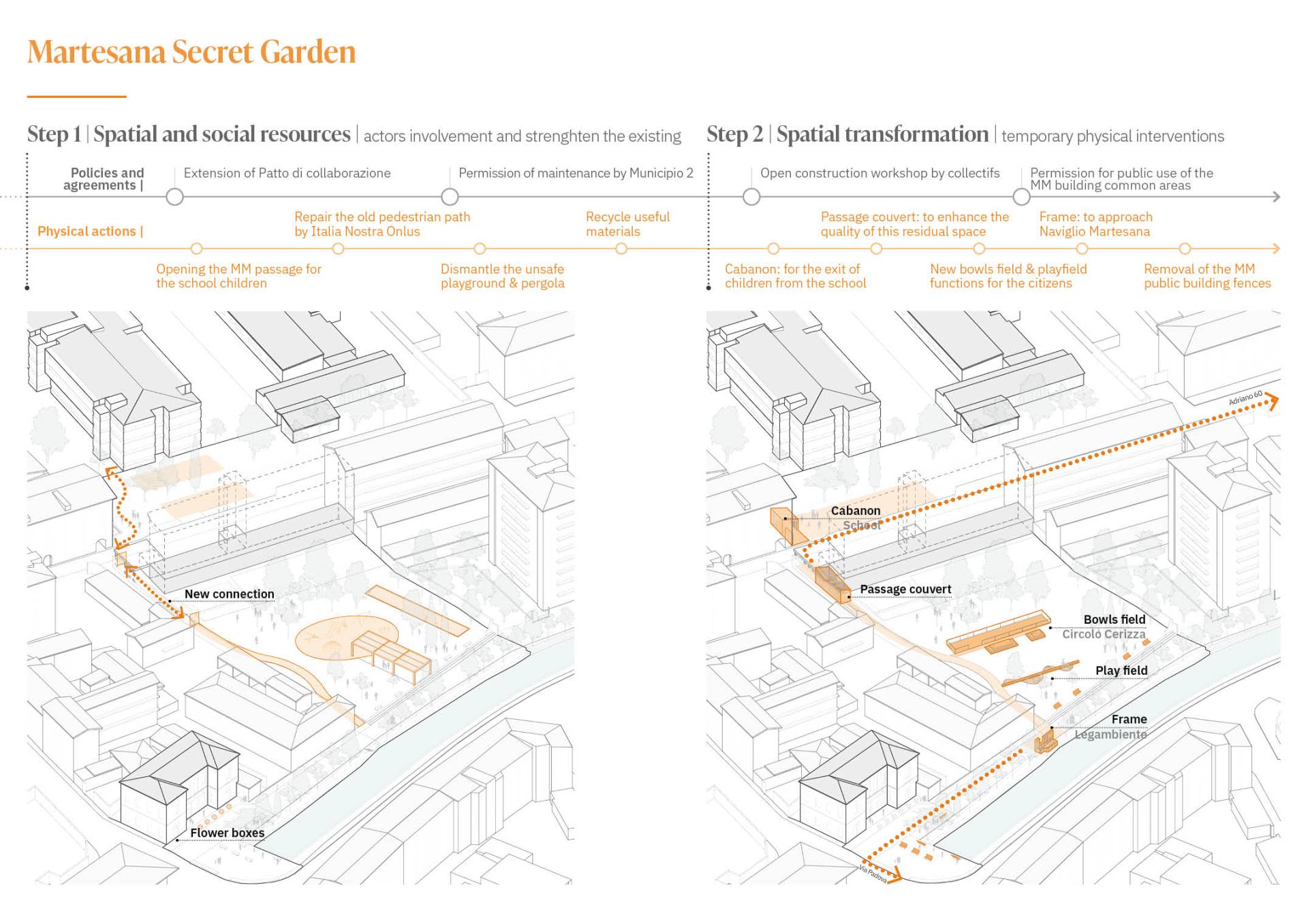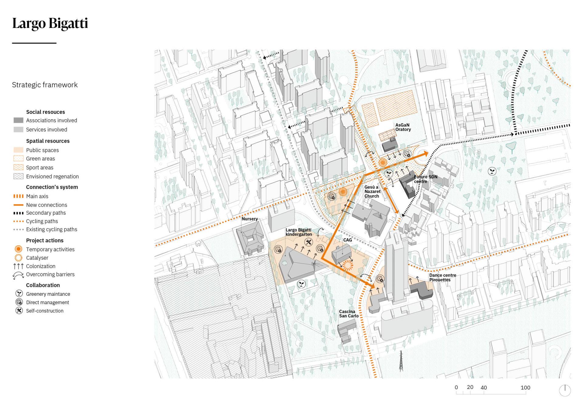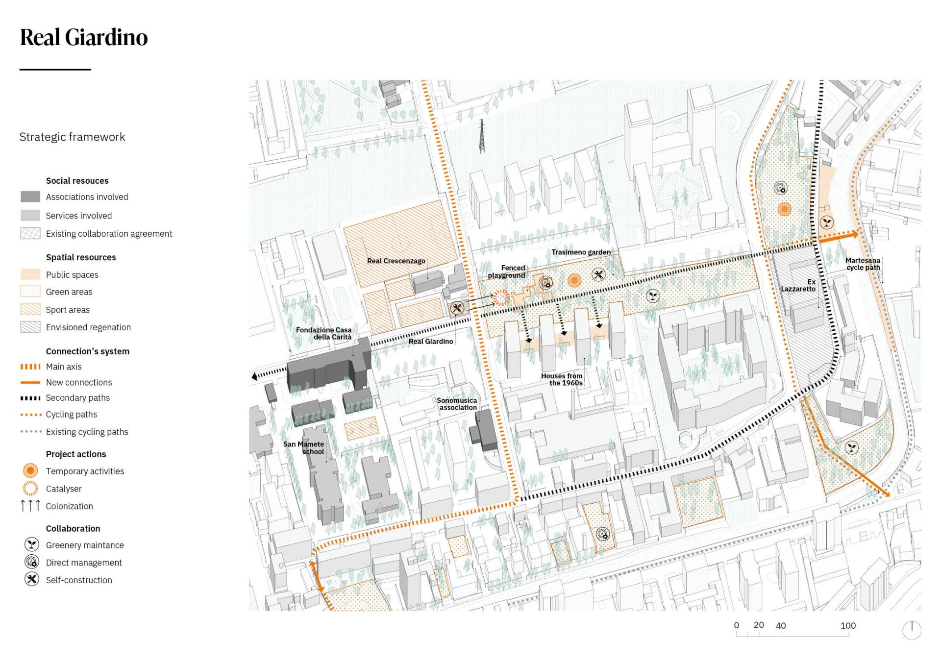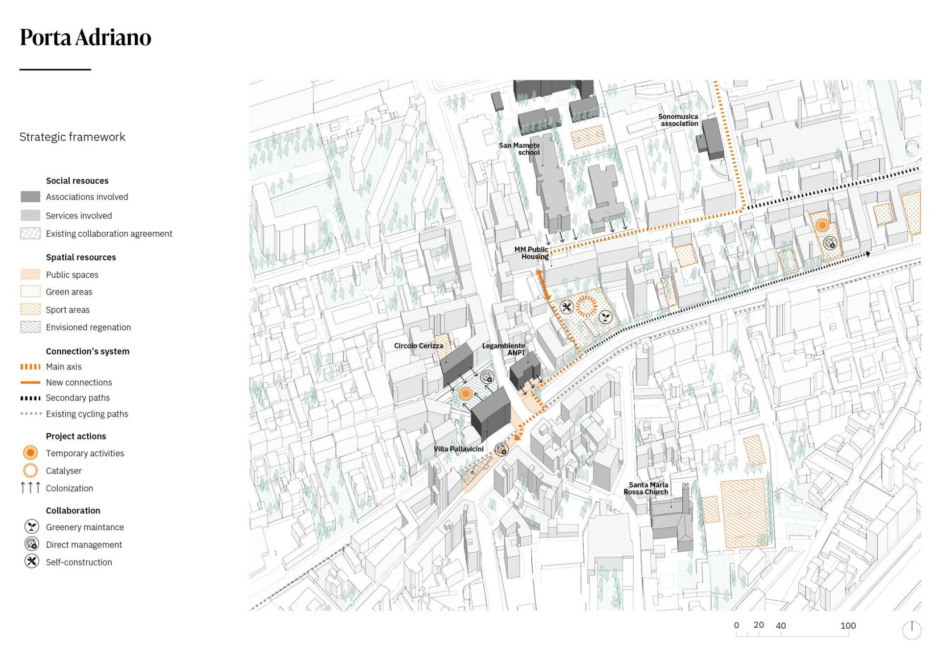 First enhancing the existing geographies of services and collaboration. In this regard, the urban project is part of a wider process, strengthening the local energies and in particular the presence of two agreements between citizen and the municipality for direct care and management.