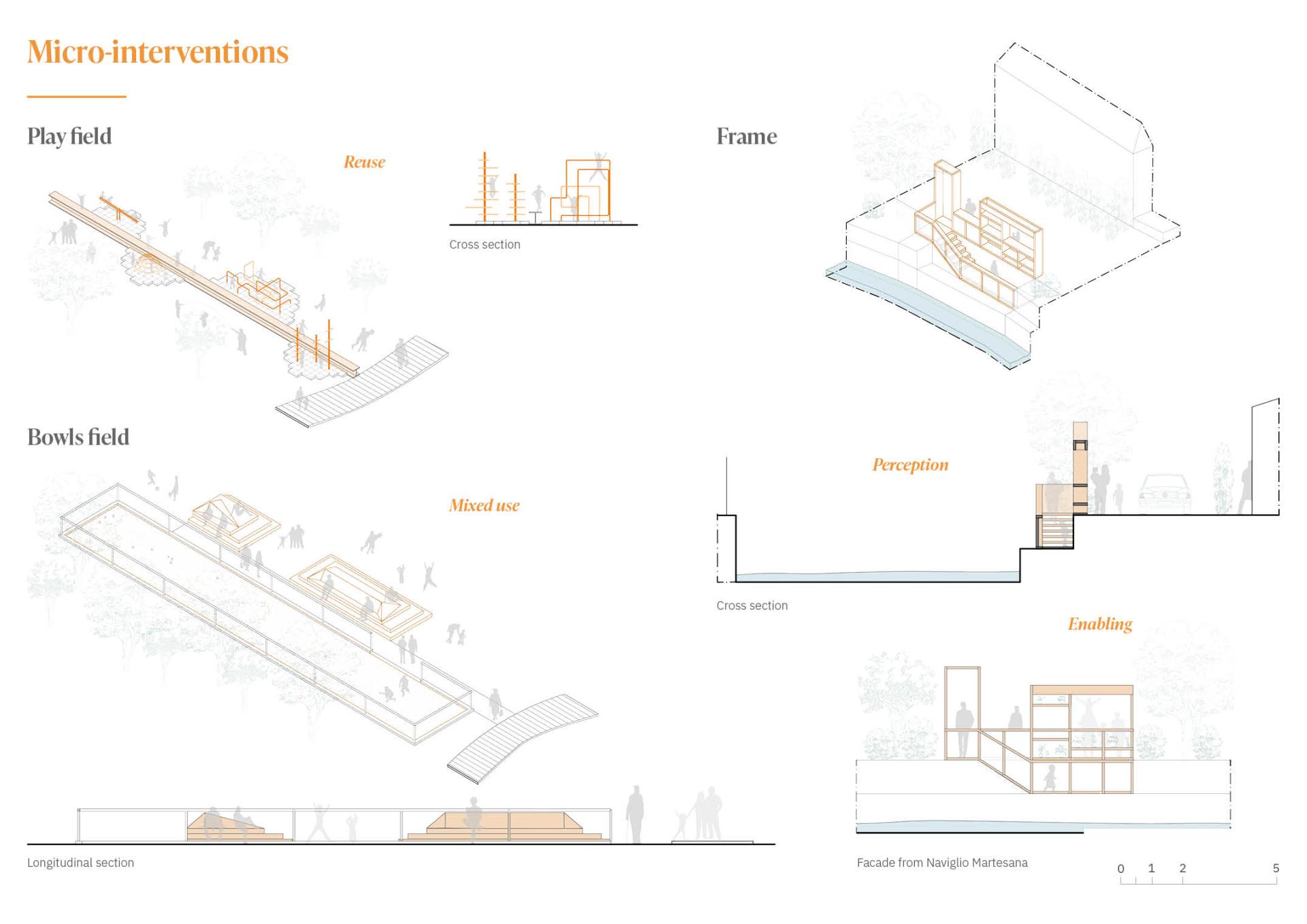 Punctual short-term interventions can respond to the ambition of prefiguring a future urban design project. Those interventions are always reversible, but they consider the context in which they are set, activating neglected spaces, and inviting new uses. They enhance the existing landscape and lead to an evaluation phase for further regeneration. The last step may be adjusted in accordance with test phase results represented by the micro-interventions.
