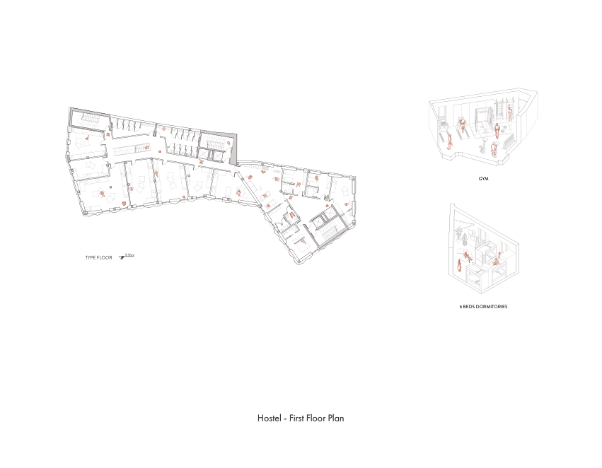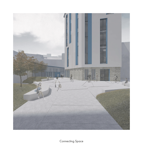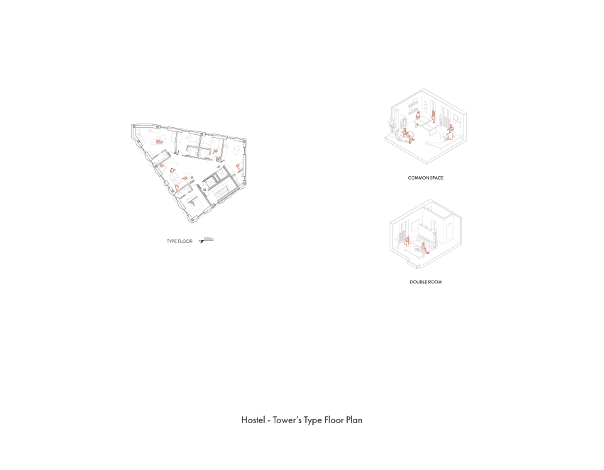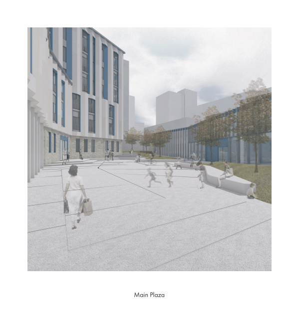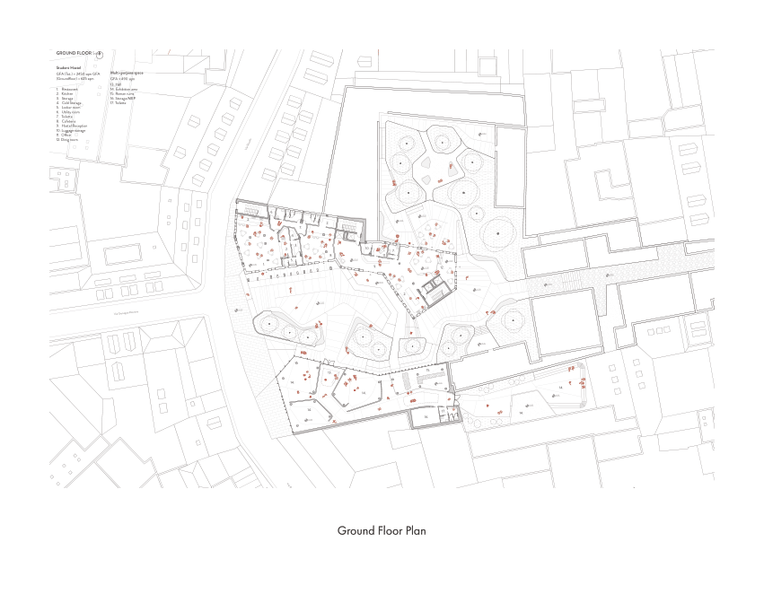 QCS Urban Grafting aims at the requalification of an abandoned area through the design of a unique architectural complex, speaking directly to both cultural and physical contexts. In this way, the architectural volumes of the student hostel and the multi-purpose space are designed in relation to the public system of plazas. The proposal is based on the theme of the path, used as a tool to define the spaces, creating a relationship both for the accessibility and the permeability within the block.