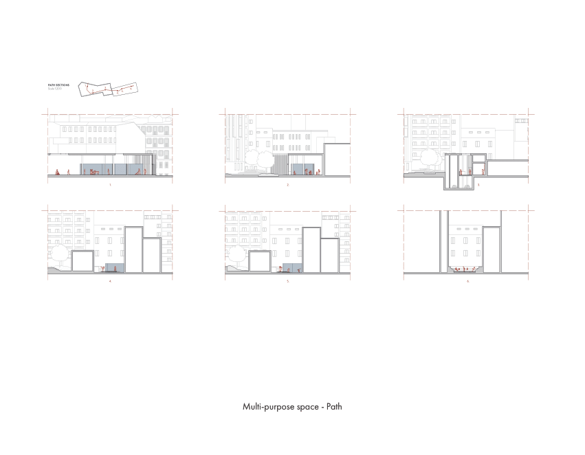 Another aspect that helps to increase the inclusiveness of an architectural space is its functional offer. The project proposes places that are not only neutral (a-functional), but also linked to an unambiguous end. The architecture takes over as an interpretative element, whose identity is given by the use that people make of it. In this way, each individual, through his own "diversities" and needs actively participates in the definition of space.