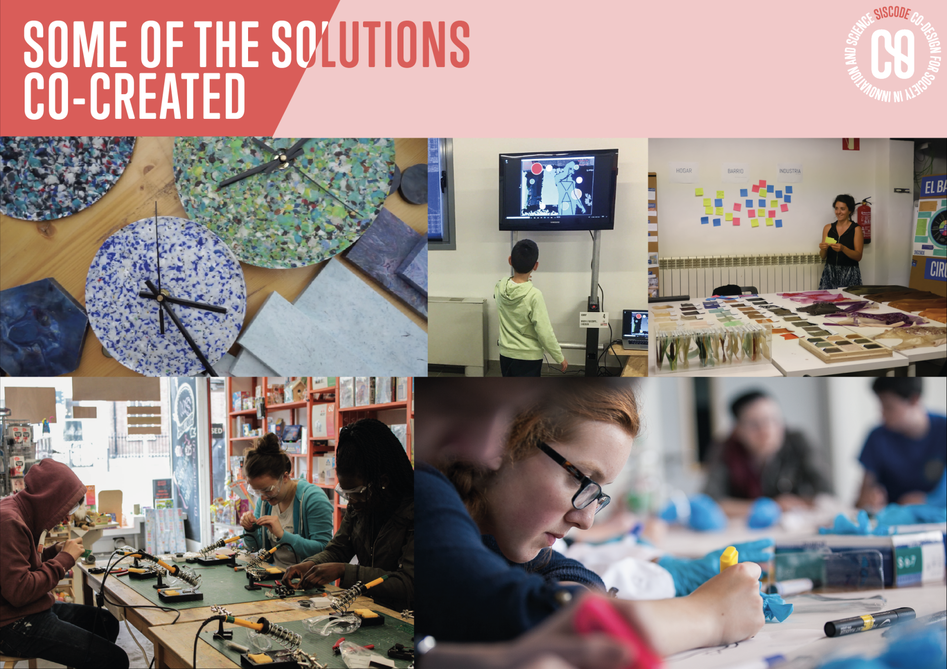 Co-creating with multiple-level actors for sustainable innovation at the encounter of society, democracy, and economy, SISCODE combines knowledge, know-how, and the natural-environment-system into an inter and transdisciplinary framework. Through its 10 pilots across Europe, it aimed at sustaining the reinforcement or construction of as many innovation ecosystems, turning labs into inclusive spaces devoted to co-create beautiful and desirable solutions together, answering real contextual needs. The co-creation considered the UN SDGs and real local societal problems as starting points, with the intent to contribute to the socio-ecological transition of society. Given these premises, each lab undertook a co-creation journey to deliver the following working and sustainable solutions: A symbiotic systems for food surplus and bio waste valorization in Barcellona’s Barrio; A circular system for local sourcing, recycling and production of sustainable polymerics; An Air Protection Program for improving the air quality in the Malopolska region; An ICT-based education program to prepare for agriculture of the future; A program for constructing life-sized, usable watercraft to safely reappropriate and enjoy the beauty of the river in Lisbon; A series of collective events and performances to raise the issue of intelligibility of Artificial Intelligence; A program that empowers young people using hobbies for improving mental health; A social currency for ensuring the quality of life in an ageing society; A life-long learning program for older adults and chronic patients; A game-based system for motor stimulation of children with cerebral palsy.
