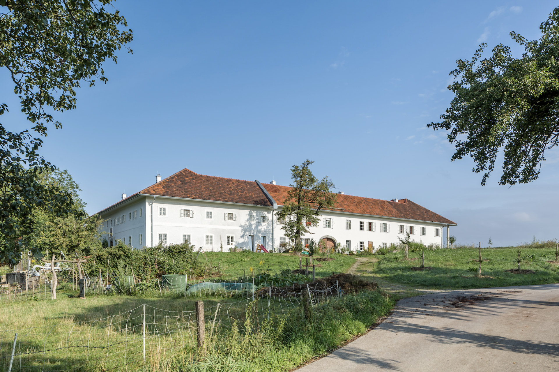 Many historically valuable monasteries and manors will no longer be needed in the future. They are an important historical building creation that give the landscape a special character. One of these courtyards is the listed manor from 1459, which has fallen into disrepair for the past 25 years. In order to revitalize the courtyard and use it again sensibly, the idea arose to turn it into a community housing project. Even if it is positive to pay attention to economical energy consumption, the important social warmth is all too often forgotten and the necessary meeting areas are not created anywhere. In order to take both into account, a project was designed that takes both the environment and the need for community into account. At the same time, an architectural monument was saved from deterioration. It makes more ecological sense to use existing buildings than to build new ones. You don't need a new infrastructure, you can use existing resources and you don't need any new building space. The formerly agricultural cultural asset has now become home to 22 families. With the glass roofing of the inner courtyard, a 471m2 attractive common room for the residents was created in the heart of the house. A third of the glass surface can be moved electrically to prevent overheating in summer. At the same time, the yard is now also a huge solar collector. With the radiant heat of the surface heating of the old masonry, a high level of comfort is achieved with the least amount of energy. The cooling effect of the massive historical mixed masonry made of stone and clay bricks is achieved in summer without the use of energy. Further positive effects of this project are that the cohesion of the people is promoted, which is necessary for an aging society with its social costs that are difficult to finance. An alternative to urban sprawl is offered and moving the dwellings closer together also saves energy.