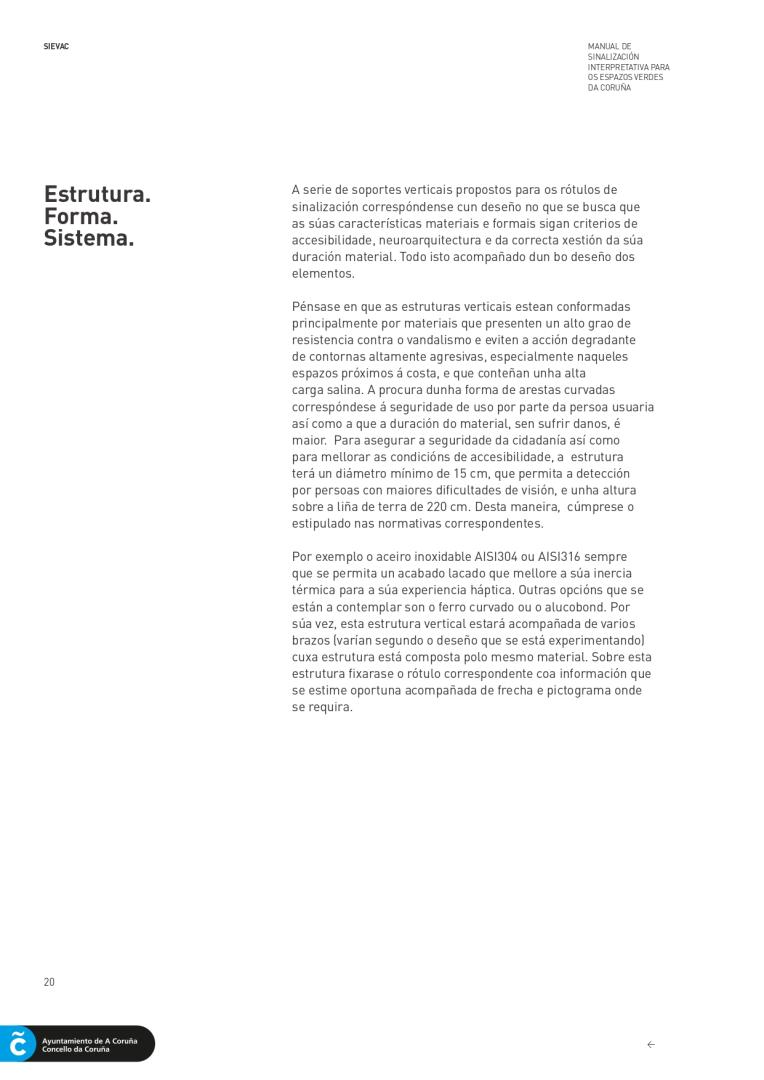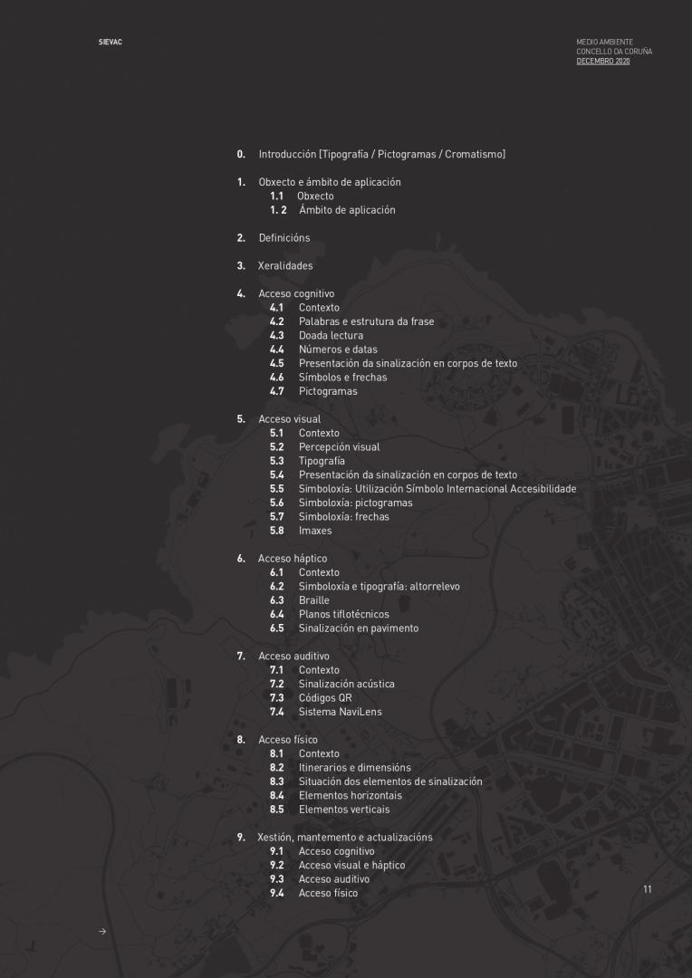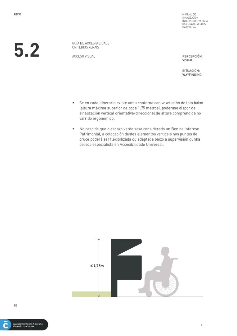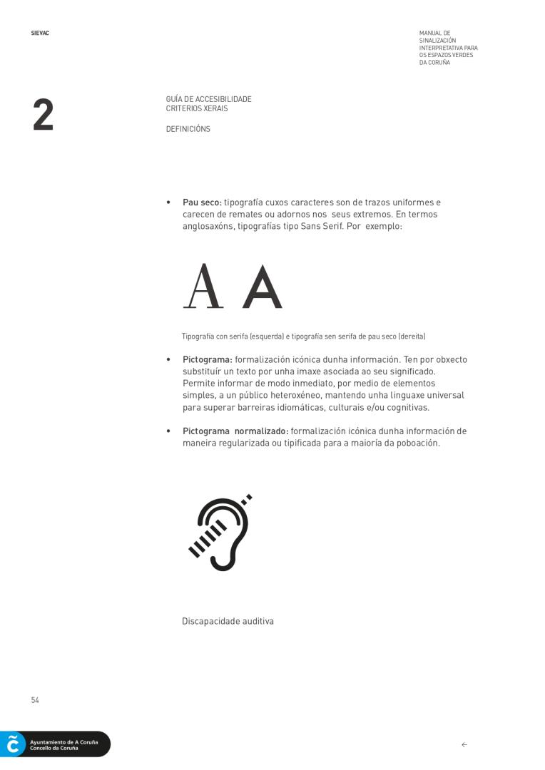 The Environment’s departament of the City Council of A Coruña, understood it needed to provide the city with a unique and more accessible signage to all people. For this reason, they hired me as project and accessibility director and the company Novagarda S.L to carry out the layout design of the guide. Signage is essential in the orientation in the space. A correct application provides greater accessibility in public spaces. As an architect specialized in universal accessibility, I proposed a universal signaling system,accesible to all people, with or without disabilities.
