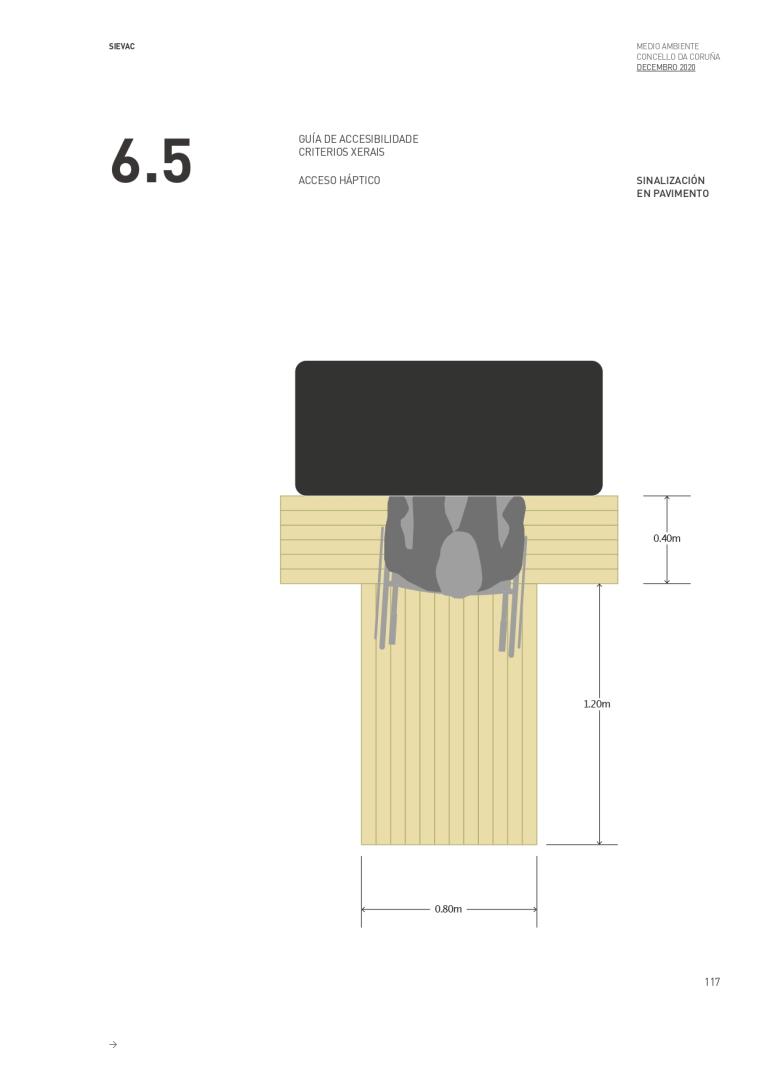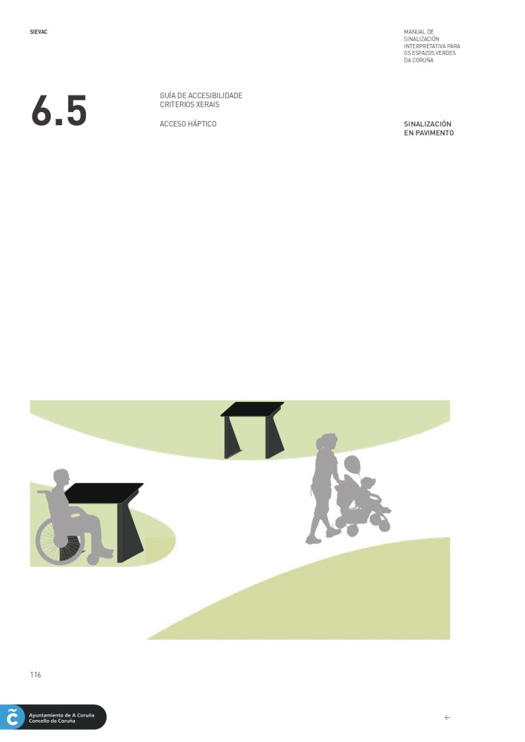 3. Haptic accesibility: high relief in symbols and typography, use of braille, use of raised planes, signage on the pavement up to the signs ...