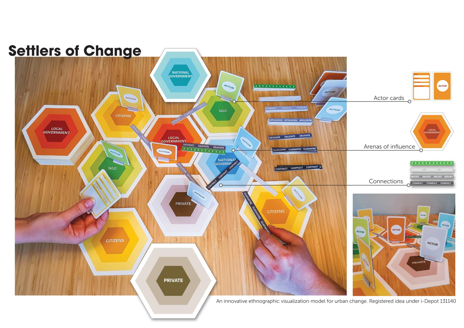 In Settlers of Change, different stakeholders will be invited to jointly build the urban planning governance process in the different government levels, private and third-sector. They will be asked to determine actors, their roles, relationships, and proximity. The sessions will be recorded, and reported with the help of visualization tools. Knowledge of patterns is the first step towards change, and participants can map bottlenecks and opportunities and develop possible roadmaps for transitions.