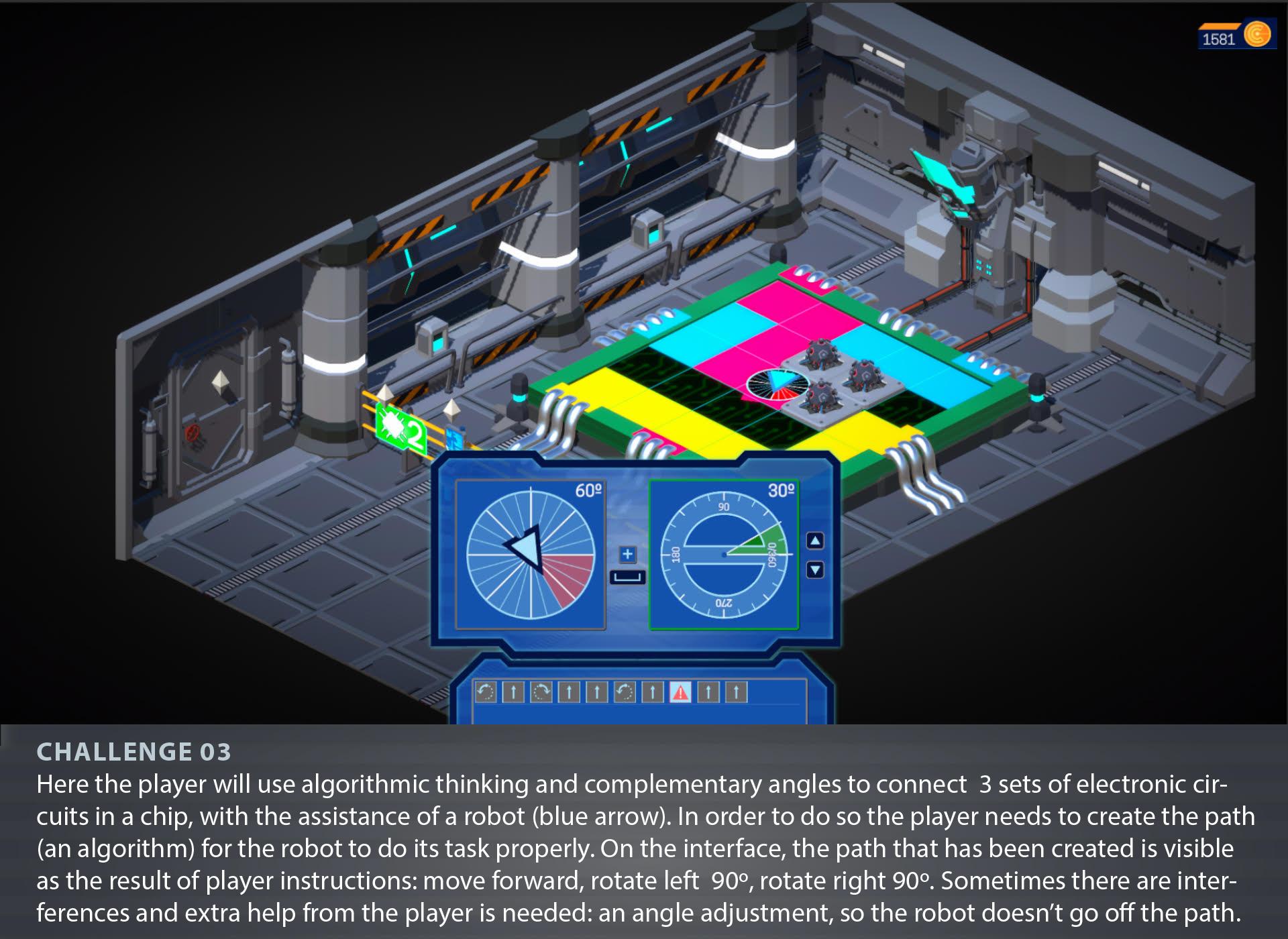 Concerning the Graphic User Interface has sought visual coherence and clarity of information and has been iteratively evaluated by children, as well all the game user experience. Game UX considers the whole experience players have with the game itself, from interacting with menus and controls to the emotion and motivation felt during and after gameplay. Typography, backgrounds, and colors were chosen to meet the principles of objectivity and clarity to the graphic support, from which stands out the adoption of a flat design style and a graphic coherence between different support panels.