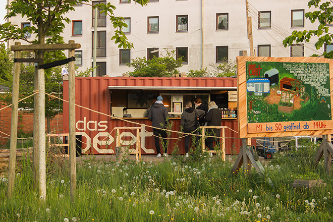 A cultural kiosk café that is along with other initiatives transforming an abandoned soccer field into a park of biodiversity and cultural meeting point. We provide the extra pepper into the soup of co-creation of a communal space with music, creativity and an extra portion of good food. Cause good food, is good for the mood. With sustainability as our carriage, we ride towards a brighter future. Was geht? Das Beet!