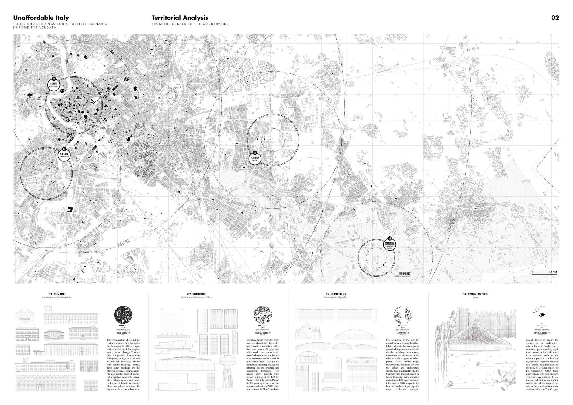 The large Stadium by Calatrava represents the symbol of unfinished architecture in Italy, located in the middle of the Roman countryside. The challenge of this project is reinventing the strong landmark already existing in the rural landscape, and transforming it in a new scientific pole made it from and for the community. The unfinished stadium is reactivated mainly as a museum dedicated to the sciences, then by hosting in part some research spaces.