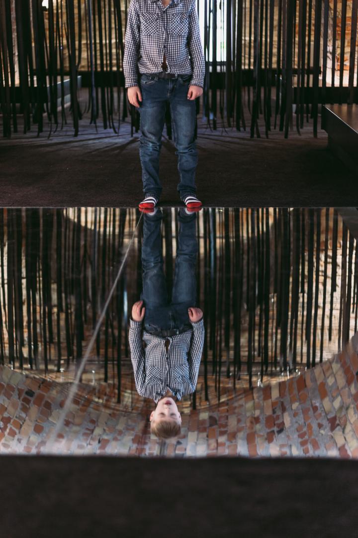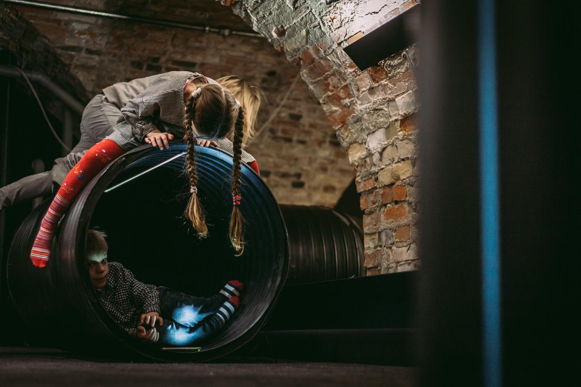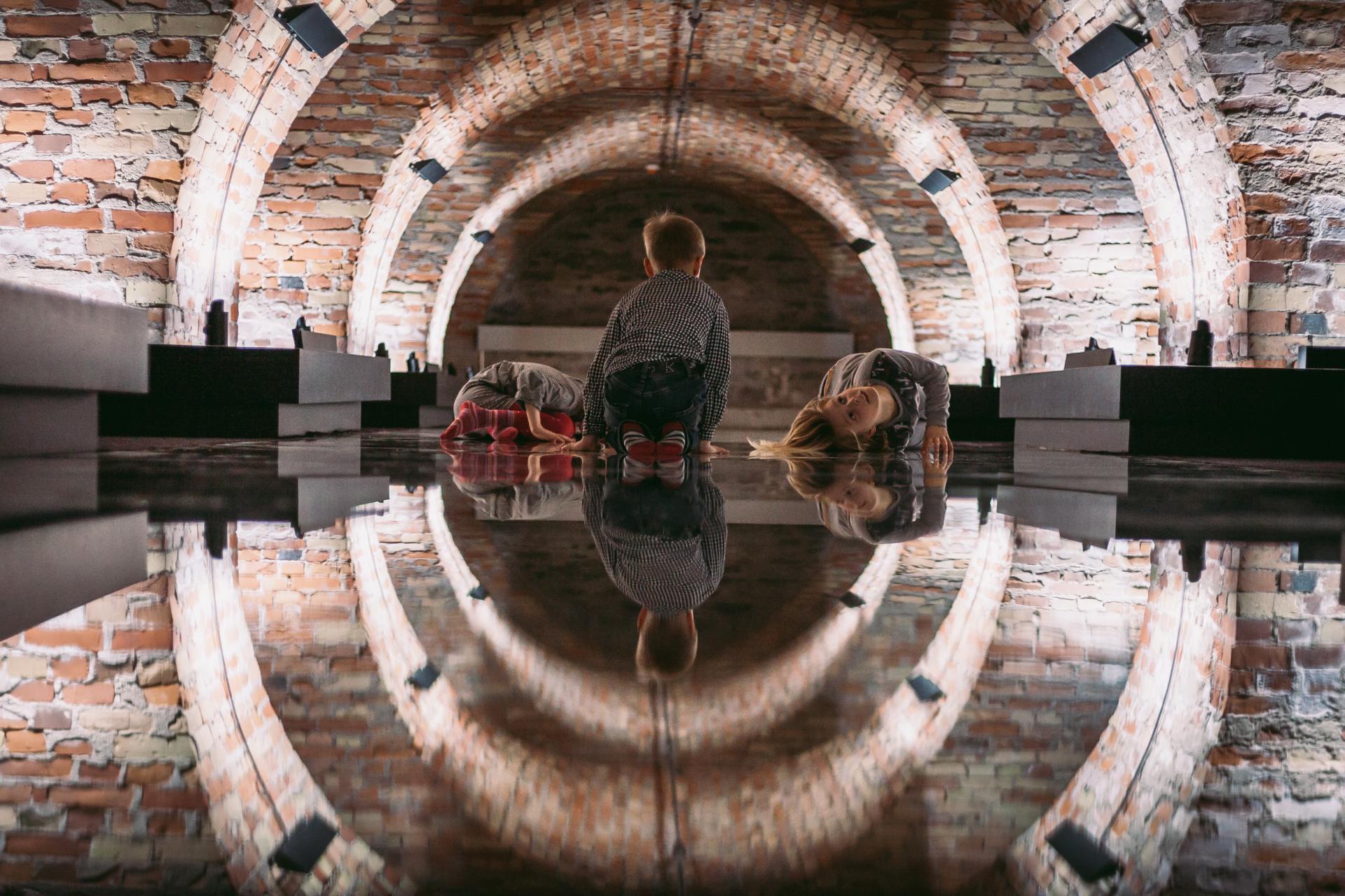 Aesthetics and quality of spatial experience are an integrated part of Arhitektuurikool's educational program. A good example of how Arhitektuurikool approaches the quality of spatial experience beyond functionality is the permanent exhibition "Explore Space!" at the Estonian Architecture Museum, curated and designed by Arhitektuurikool's team, together with school students who offered their views on the spatial qualities which they enjoy. The exhibition offers an augmented learning experience of diverse spatial qualities that inform our senses, as well as simple tools to analyse and understand the relation between the various spatial conditions and how we experience them. In other words, the exhibition teaches how to experience space and grasp the essence of architecture. The environment created in the vaulted basement of the Rotermann Salt Storage offers experiences for different senses, inviting everyone interested in architecture to smell and touch architecture and experience it with their whole body. Upon entering the exhibition, visitors are greeted by a unique spatial installation Reflexio where a mirror floor and game of lights expands the boundaries of the viewer’s perception and the concept of physical space. A totally different experience is offered by the forest of ribbons hanging from the ceiling. Walking through it you will find a sphere—a safe nest for being on your own. Various display items direct children to identify different building materials and constructions, think about the ‘circulatory system’ of a house and the specific smells that relate to various rooms. There are tubes to crawl through and an animated book where rooms, streets and the entire city come alive as the pages are turned. Light design plays an important role at the exhibition, where the play of light and shadows draws out the old vaults and red brick columns of the salt storage—all covered with a permanent crust of salt.