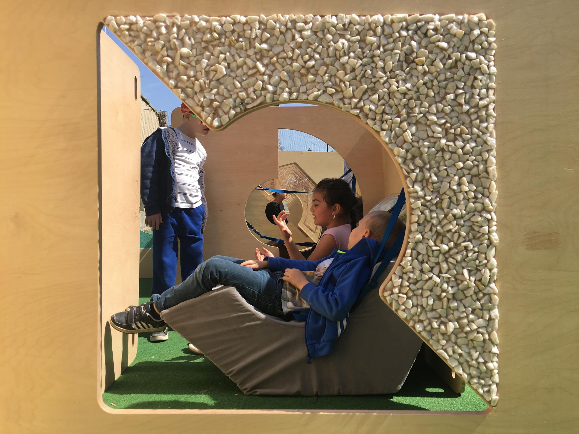 - The playground is a product designed and produced by an NGO (AMAIS) and design studio (Rhizome) formed by an inclusive team (people with disabilities and able-bodied ones), who opted for the involvement of direct beneficiaries in the design process (architecture / participatory design)