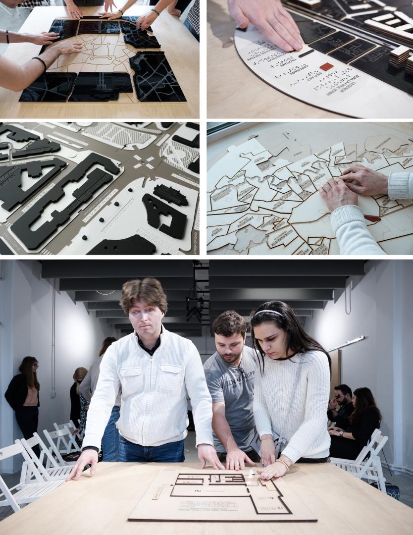 - Designing and producing tactile maps of the city: the visually impaired beneficiaries have learned how to read such maps and to understand the concept of scale; these maps facilitated the understanding of the size of Bucharest and its characteristics while developing mental mapping skills of the environment.