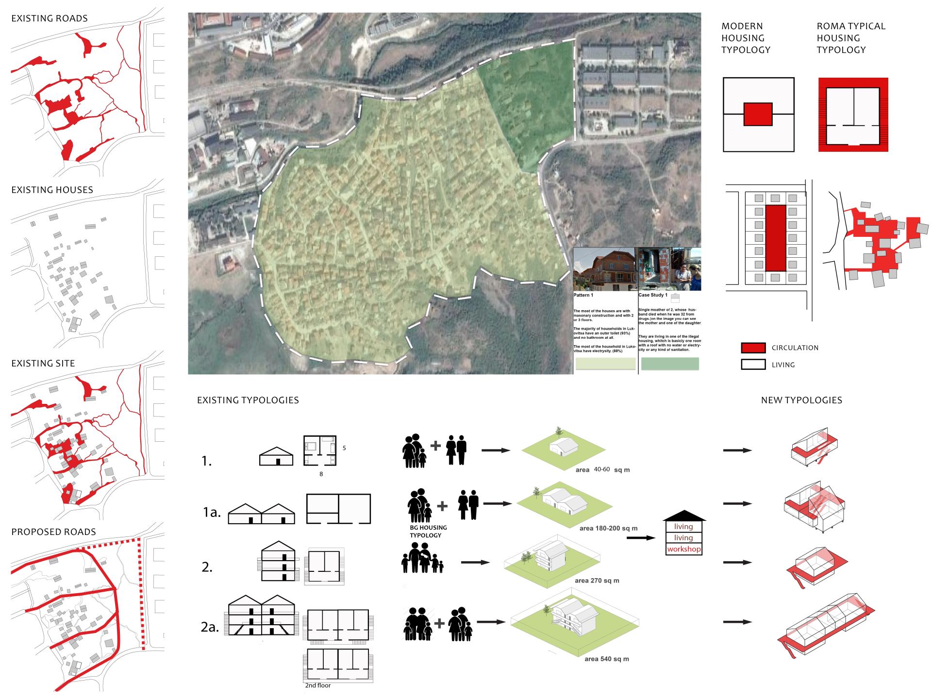 Today one of the biggest challenge Europe has to face after its enlargement, is the poor socio-economic conditions of the Romani people, which is unacceptable at the beginning of the 21st century. heir camps and ghettos are in the cities all over Europe such as: Paris (France), Rome (Italy), Belgrade (Serbia), but the largest are in Romania and Bulgaria.Social inclusion and poverty reduction is one of the five targets to be achieved, outlined by “Europe 2020” strategy for smart, sustainable and inclusive growth. This target is aligned as well, with the 11 Sustainable Development Goals of the Habitat III UN New Urban Agenda for sustainable cities and communities. Our innovative solution is not only by offering new housing prototypes, as a model for sustainable improvement of these vulnerable neighborhoods in Bulgaria and across Europe, but also by using more holistic strategy, recommended by the EU framework for integrating Romani people on national and international level. Approach, where the physical improvement of the neighborhood, such as housing, is combined with the social and economic integration (employment, education and healthcare). We also studied how community can inform and influence policy and practice in more creative and ambitious ways, and how urban studies and related fields can address and respond to these new societal challenges and opportunities.