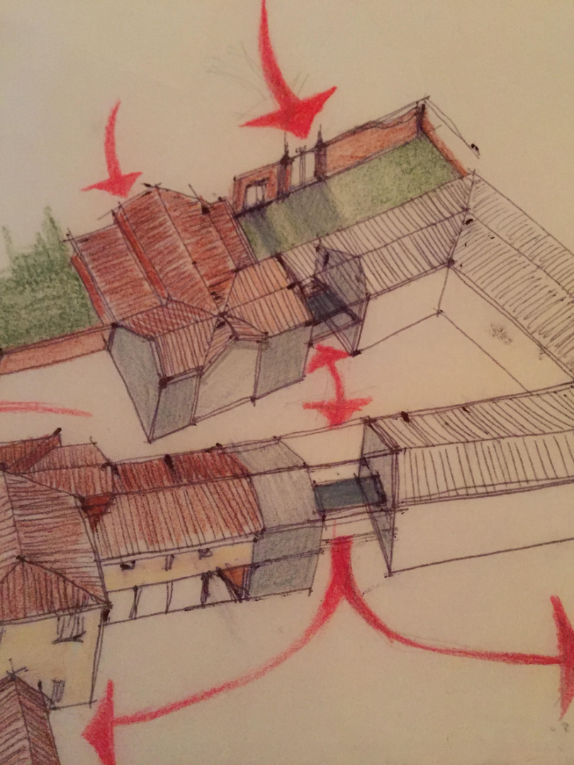 In the last decades, CNS looked like a complex forgotten building, no longer used and under degrading. The building looked very different from the original implant of the Cascina and it consists of a built courtyard gathered around the "manor house" and disengaged from two courts in which the everyday life. The gross floor area resulted in fragmented e mutilated by decay and abandonment. It was precisely from the analysis of the development of the core housing, through the land registers, that the NaturalMente team brought out the idea of the reconstitution of the two courts, recomposing the ancient body of the building that emerged here and there from the ruins and which became an inspirational and reference element in the project.