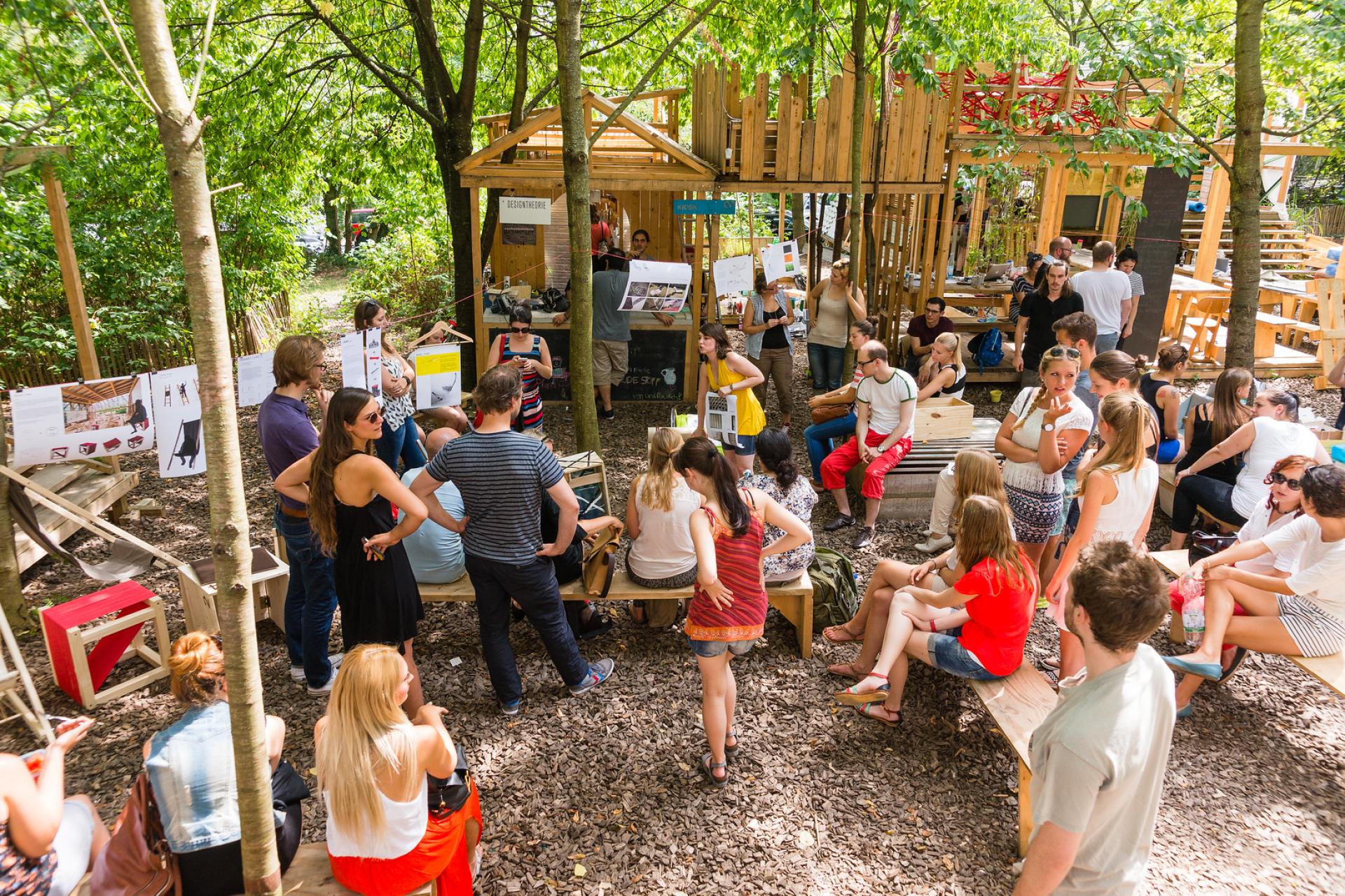 The “Osthang”is a place of the arts and artists, of freedom and leisure, away from the concrete, noise and commerce: a small piece of forest, a unique place to meet and share, a real utopia. Located on the eastern slope of the Mathildenhöhe in Darmstadt, the“Osthang” represents a modern experimental area: whether design, art, architecture, film, dance, theater or photography - everyone is welcome to join this open space and co-creative process to bring its temporary architecture into life