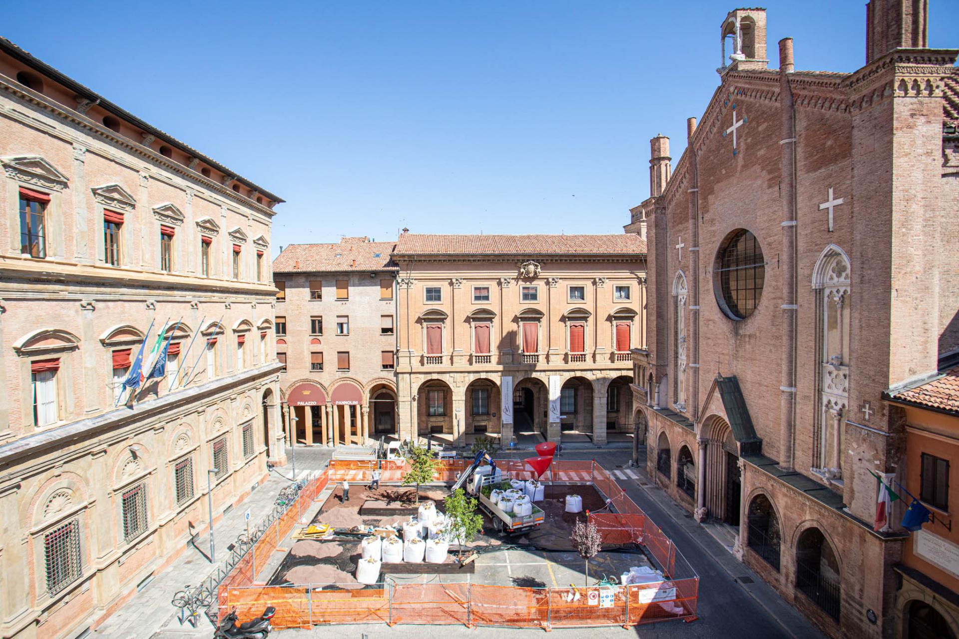 As highlighted by numerous archival documents, maps, and views of this area, part of the ancient churchyard or cemetery of San Giacomo Maggiore cathedral was originally constituted by a green vegetal pavement. Thus, the project proposal for the temporary staging of the square represented also a great opportunity to recover part of the city's historical memory.
