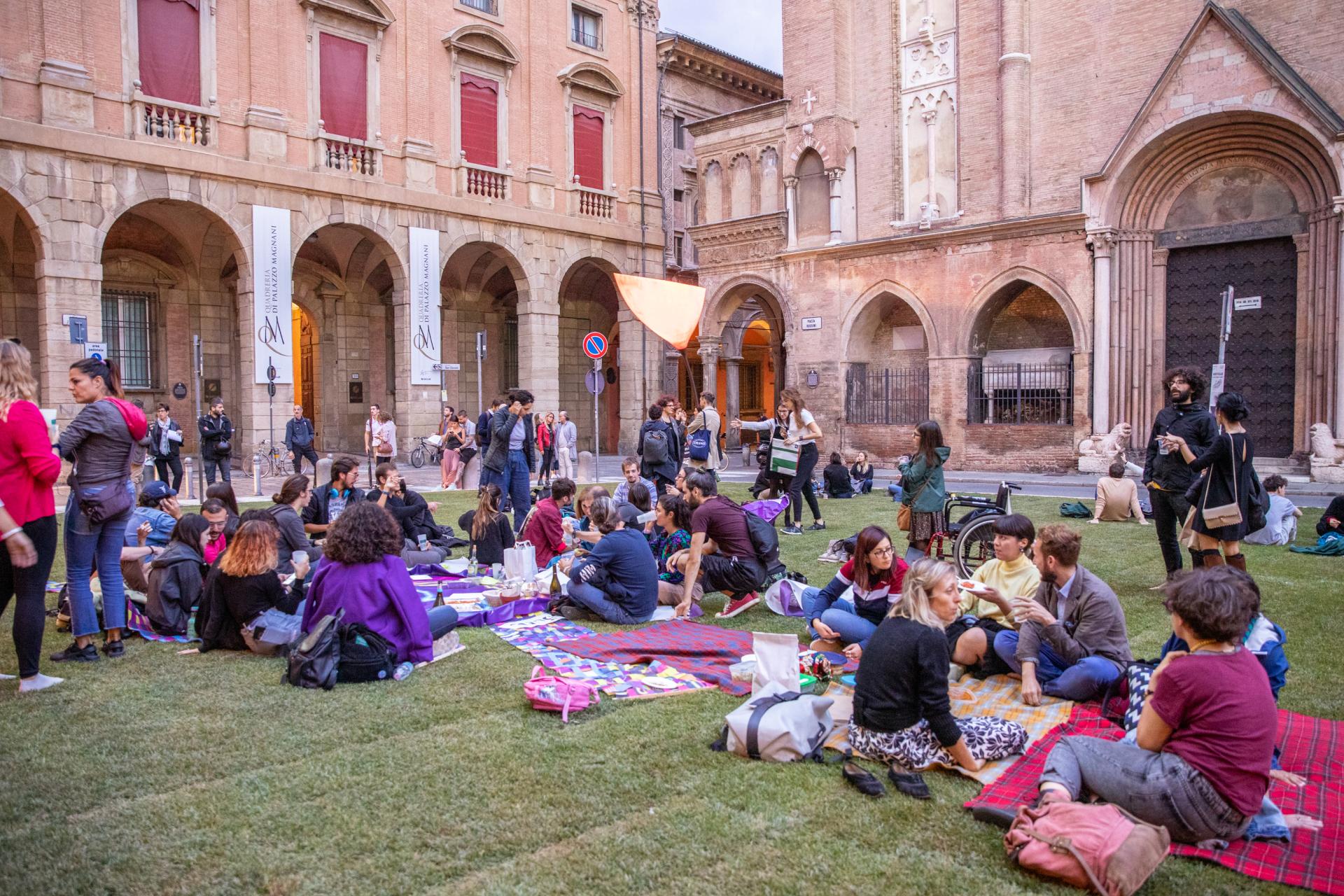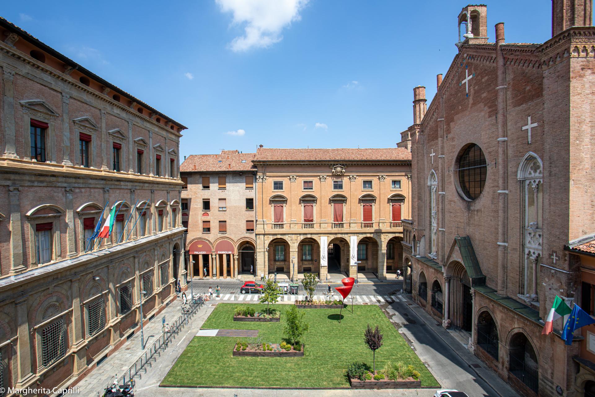 The temporary pedestrianization aimed at restoring and enhancing the quality of experience within the space, by providing the citizens with the opportunity to rediscover and appreciate the details of the architecture surrounding the square. The objective was met by re-defining the function of this space through the Green Please set-up: a green space where to stop by, gather and socialize having an unexpected perspective on the city's cultural heritage. Opening up the possibility to stand in the middle of the square enabled people for the first time to have a complete view of San Giacomo Maggiore cathedral, the late Renaissance front of Palazzo Magnani, the example of 18th-century civil architecture Palazzina Lambertini and the 16th-century Palazzo Malvezzi.