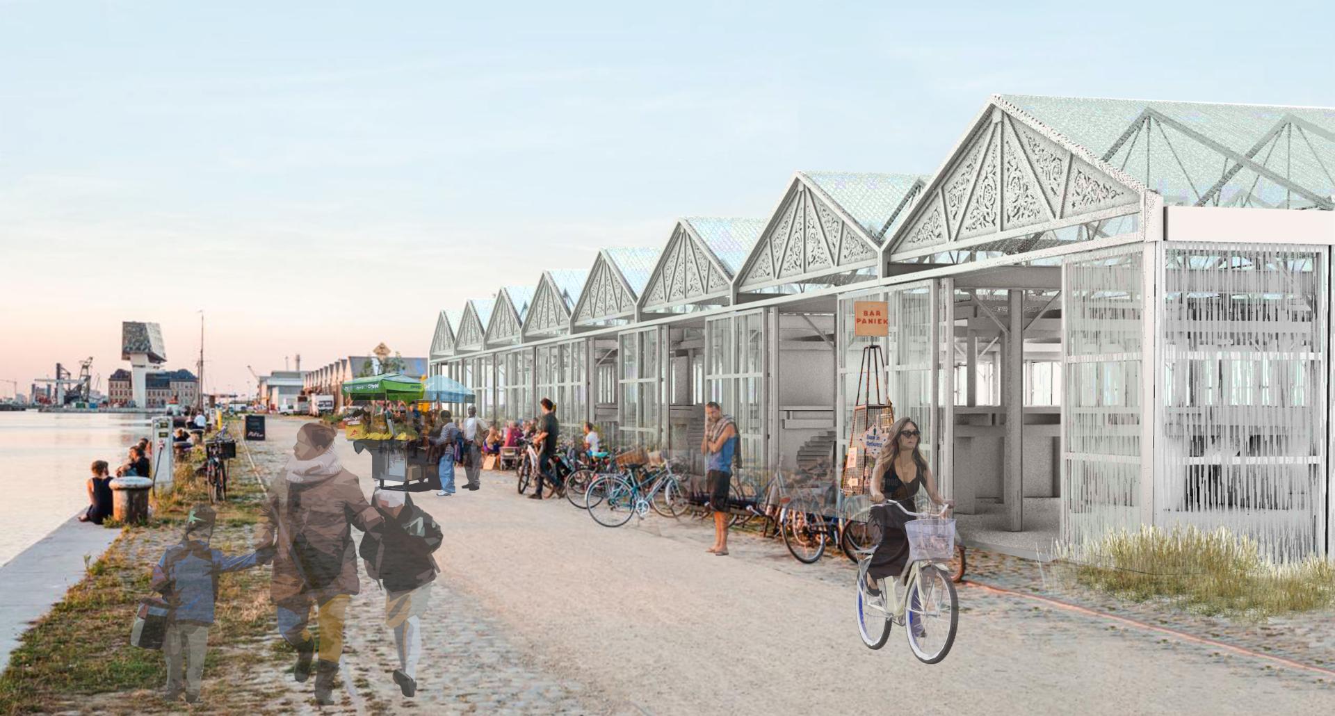 Three basic functions and potential urban development factors of the project are: The fulfill of the logistic function of product placement and transportation between the industries, the ships and the urban areas. Based on the potential of the water as a medium of transportation. A social hub of cultural centers, music halls and museums of gathering and learning space for the community’s. And its link though public transportation to the center of Antwerp. And finally the potential productivity in development of green spaces and vegetal ecosystems reintroduced in to the urban conglomerate. Plus the green mobility bike paths and accessible roads.