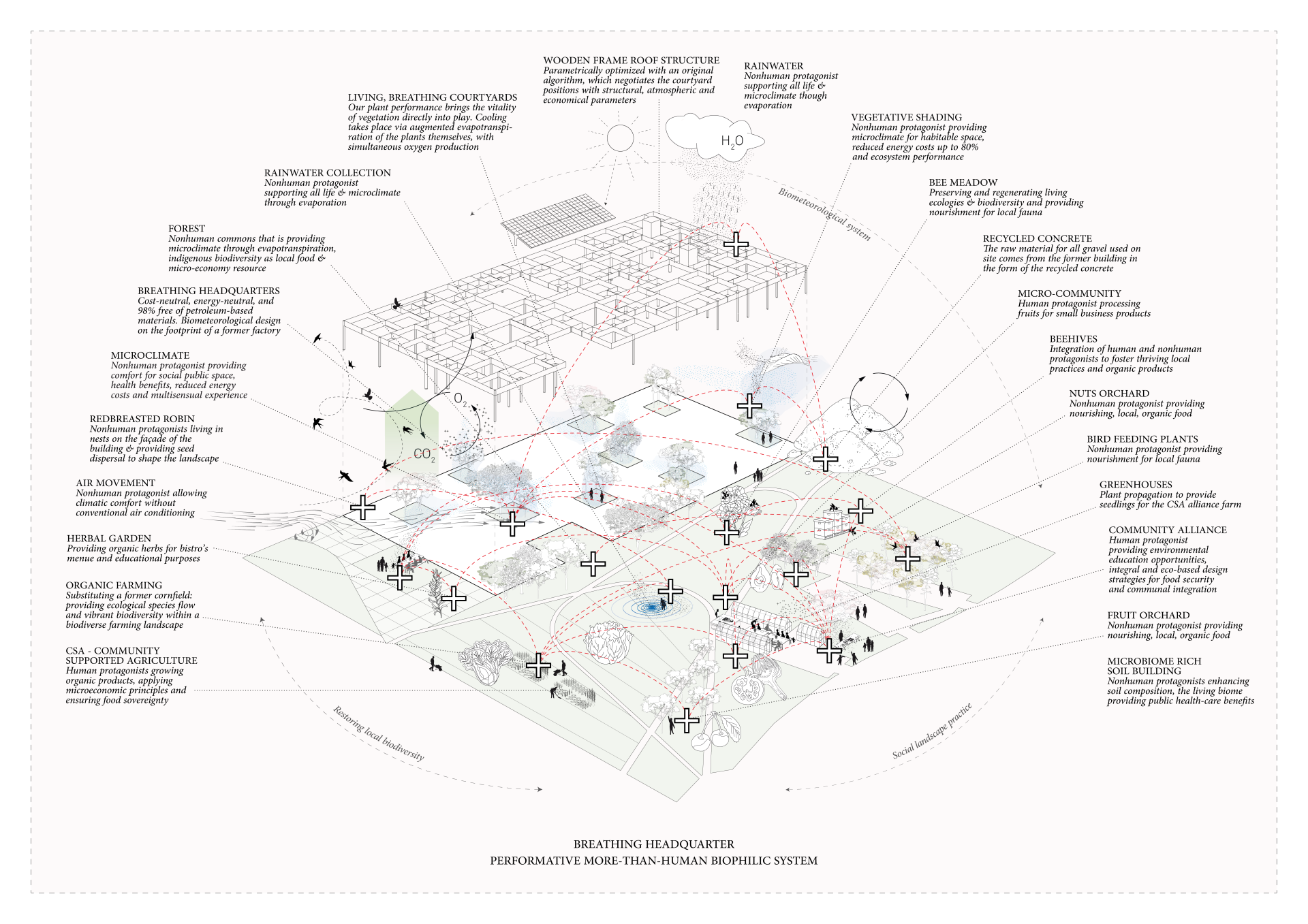 We answer in designing an entire ecosystem. In taking up the natural performance of our breathing world as our instructive co-designer. A biophilic systems-design-approach that introduces breathing into buildings.