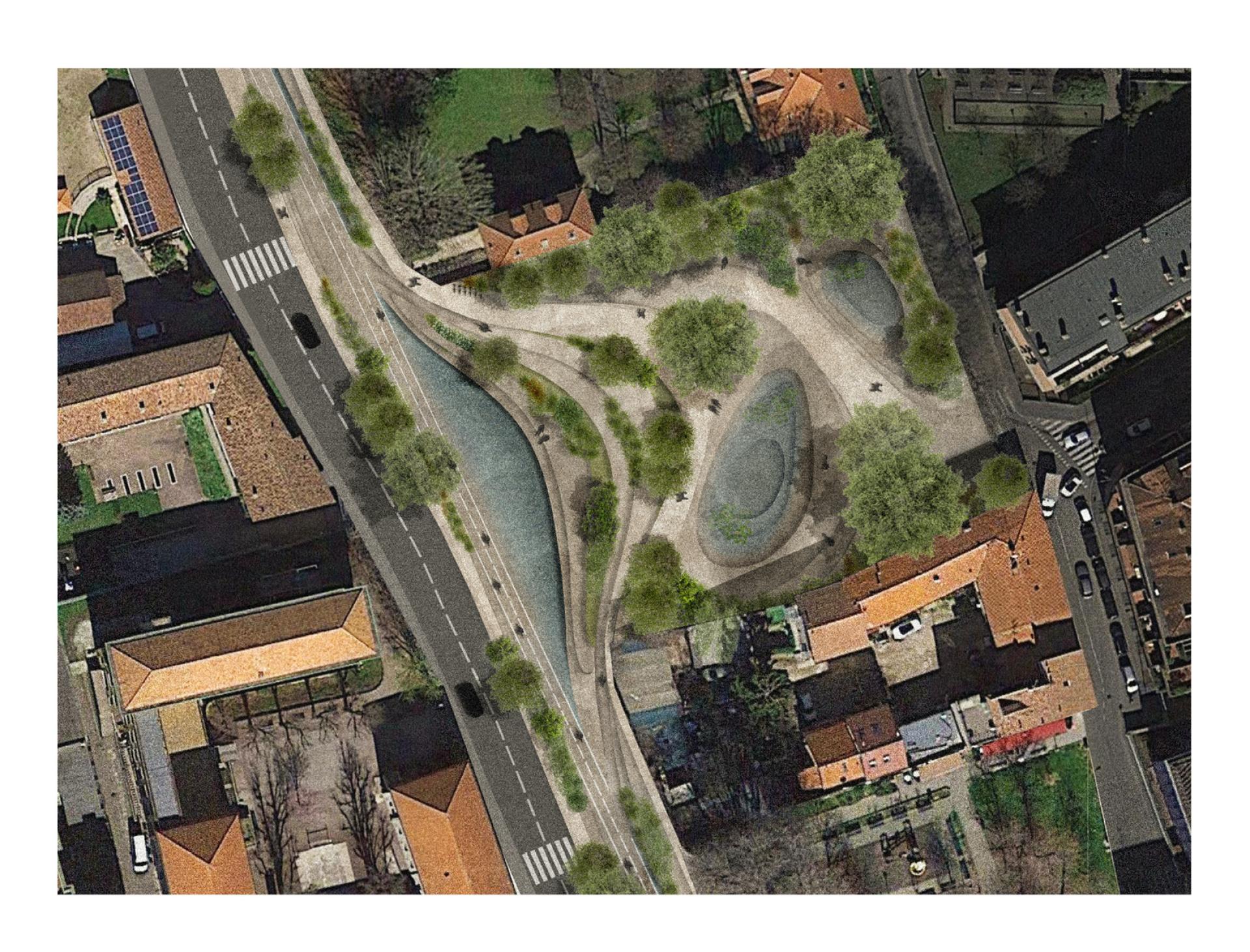 The concept of the Virtual River allows us to build the place for the manifestation of the river, that is also a new linear public space for the city, and at the same time it represents an ecosystem service that can collect the rainwater and slow it down before it meets the river and avoids. It is a metabolic action that simultaneously provides a spatial, technical and aesthetic solution.