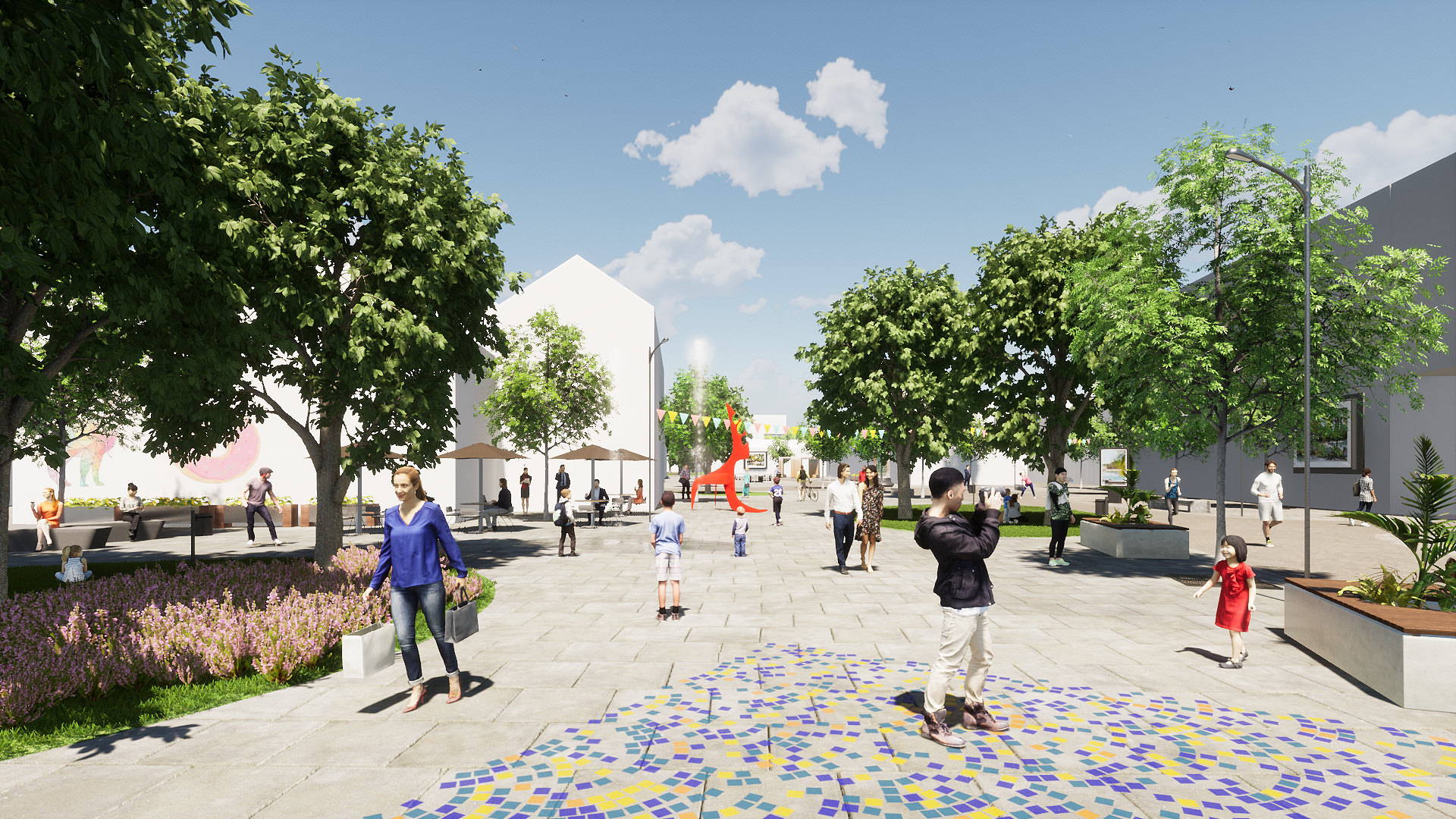 The proposed green areas and public spaces will offer open space activities along the year (following the concept of seasonality) Those create environmental comfort and implement climatic devices such as wind protection, shading, and air microflows.