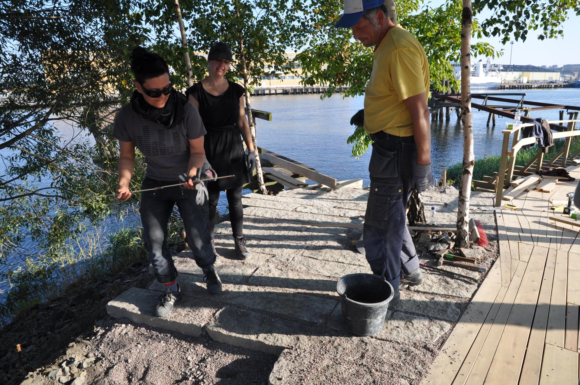 In the center of Gothenburg, along the river shore is the post-industrial area, Frihamnen located. An area that has been closed for the public for many years. The first step in the development of the area has been to prototype ideas in an open process and create a place created by a transdisciplinary team and by and for the people. Through a step-by-step process we have challenged the common ways and processes on how to plan, construct and design a public space. The method? Time as a tool for sustainability, aesthetics, and inclusion. The result? A place built by hearts, hands, and hospitality and a sustainable way to finally be able to swim in the polluted Gota River by investigation via prototyping the many bathing cultures of the city.