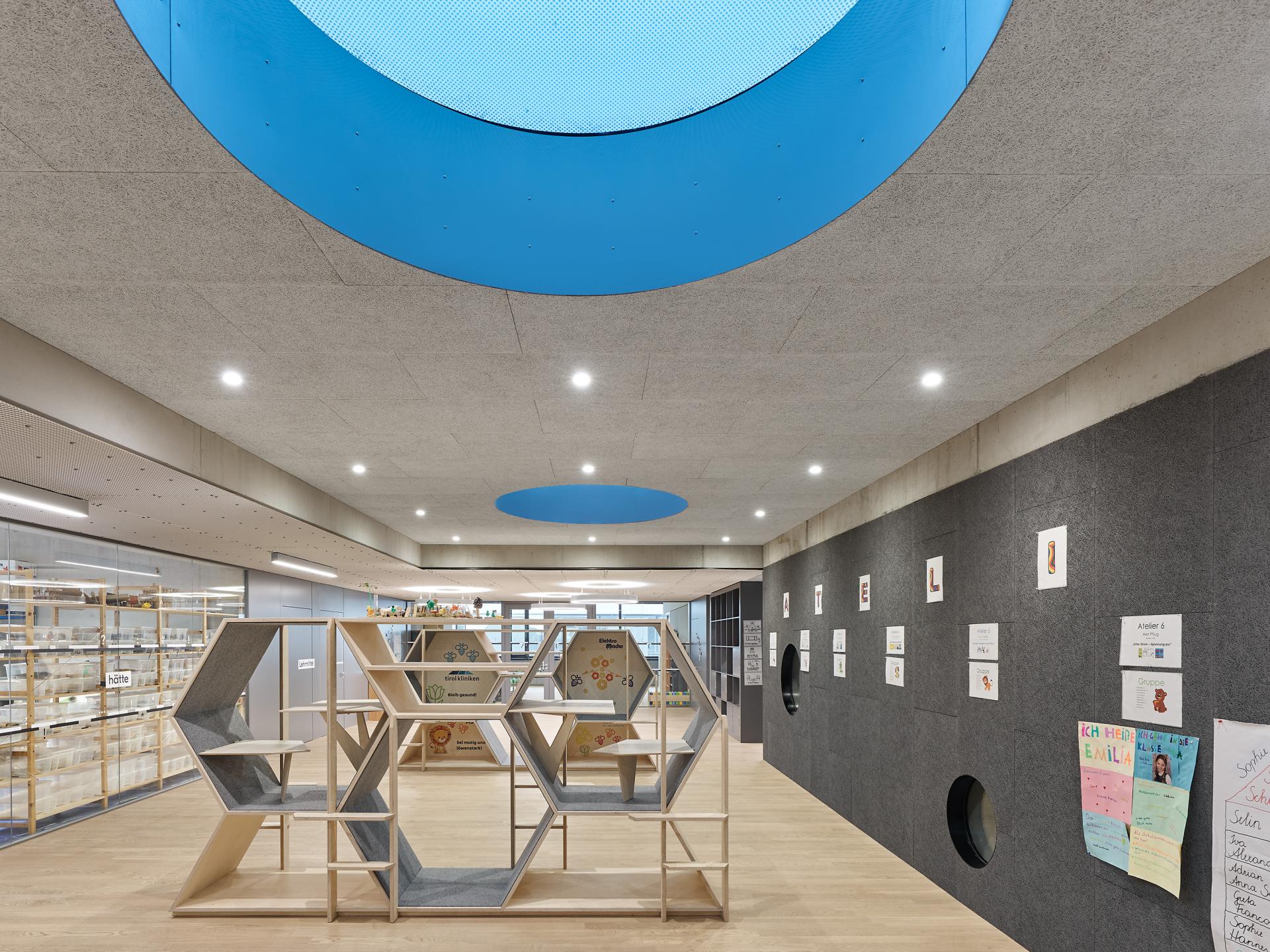 In the course of the redesign, an old structural concept with segregated rooms and separating structures in the sense of a 20th century pedagogy became an open, modern and inclusive pedagogical concept of the 21st century. This concept envisages designing transparently and openly, enabling entrances and exits, designing common learning processes spatially individually as well without excluding. Transparent room partitions, for example, allow for simultaneous group work on the one hand and the individual need for quiet and concentration on the other.