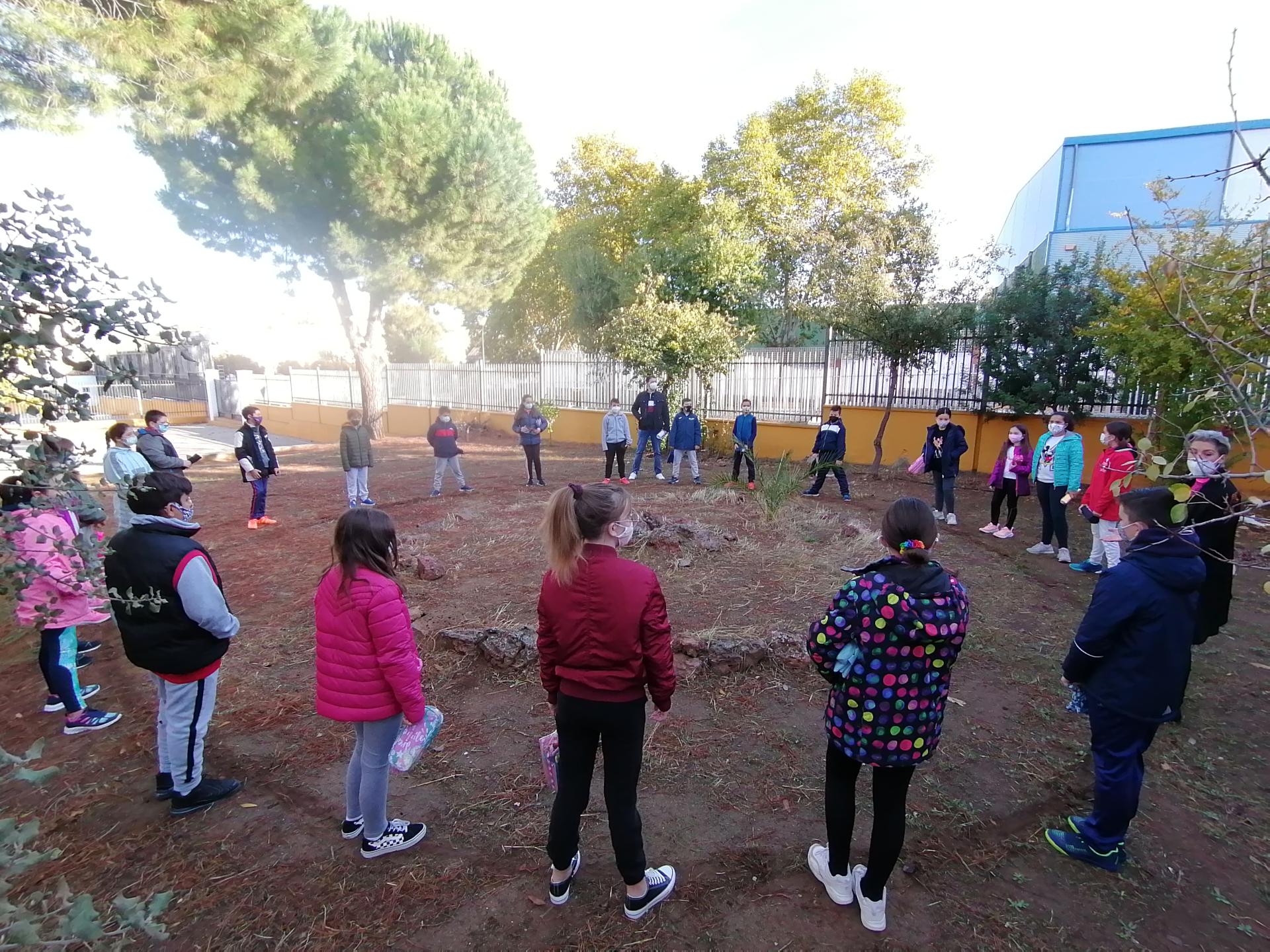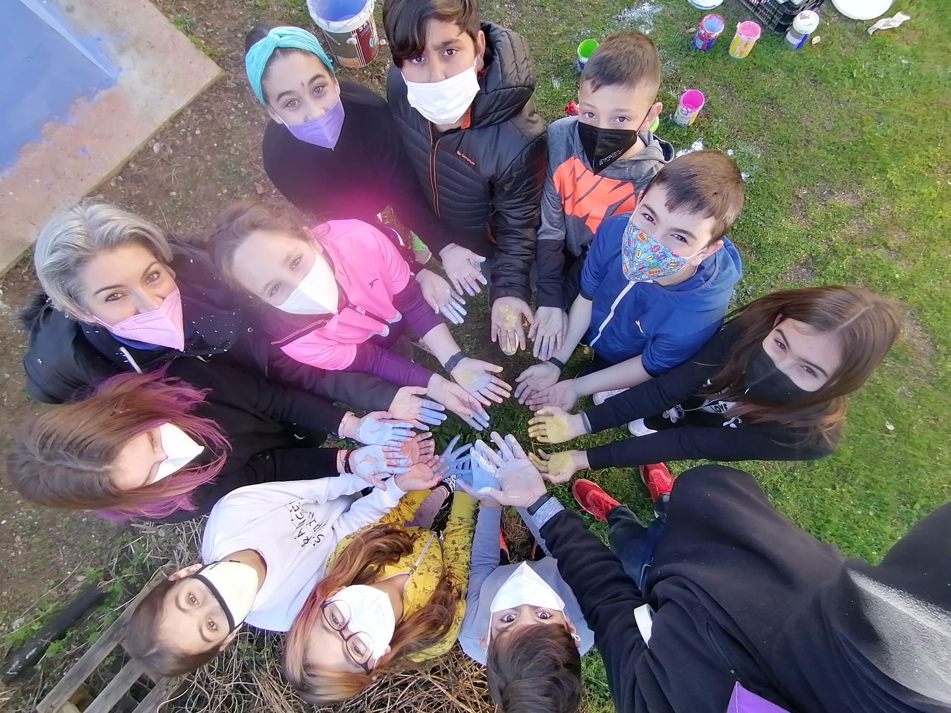 They learnt next to biologists about urban flora and fauna and linking art and science designed playful signs in English, Spanish and Latin to name the rediscovered trees. They also designed an area to have fun and to climb and painted a theatre to sing dance and celebrate the multiculturality of this school.