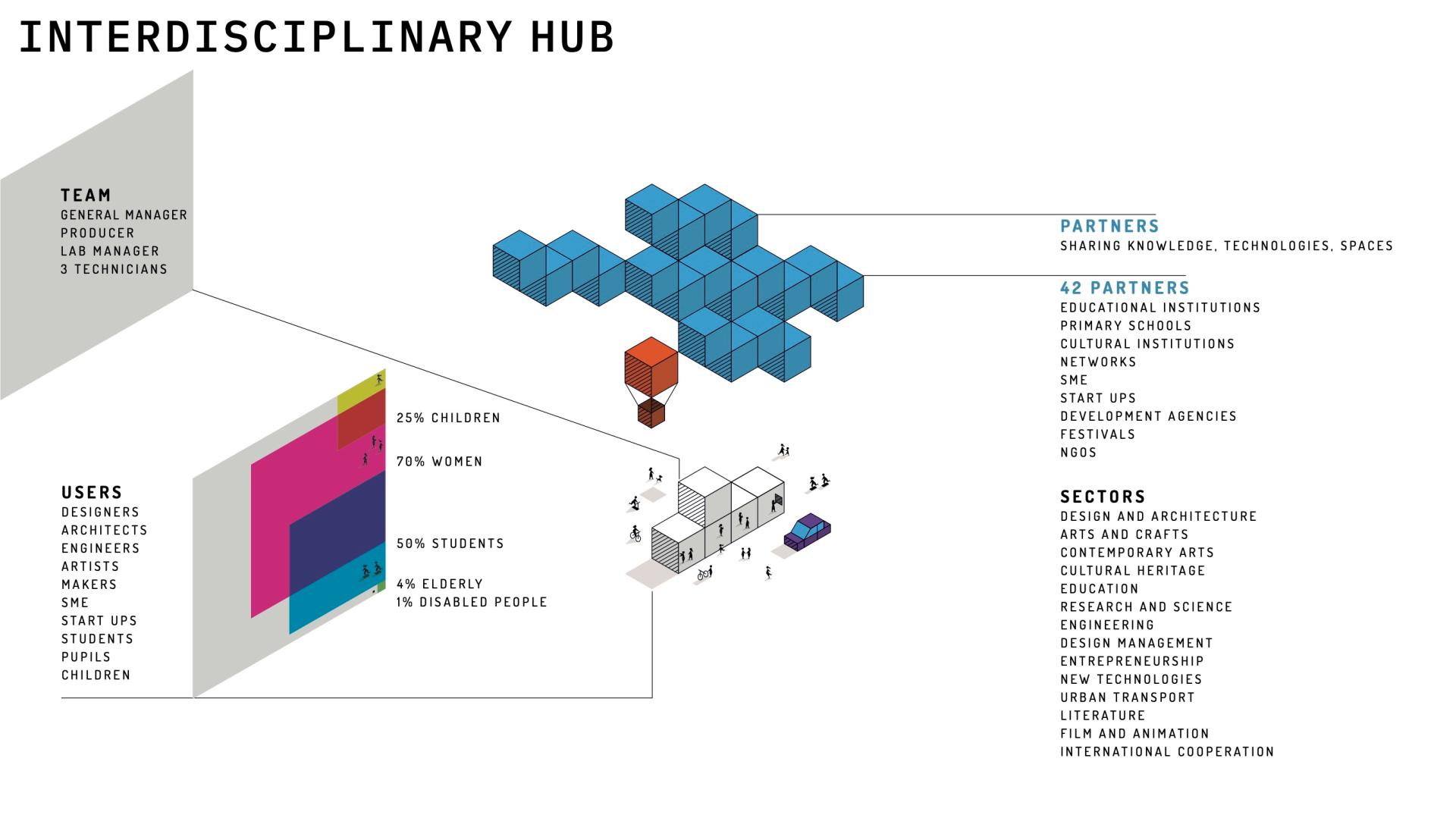 The formal participatory process started with the EU Second Chance development project, whose pivotal contribution has been its methodological approach to culturally developing and revitalising degraded industrial areas. The project connected diverse stakeholders (educational, research, cultural institutions and businesses) including grassroot stakeholders (designers, artists, temporary users of the former factory premises, neighbours and NGOs). The participatory process results opted for the development of a diversified space with shared manufacturing workshops and jointly used spaces in which individual creators, businesses, NGOs as well as educational and research institutions could make use of the common infrastructure coupled with appropriate support programmes.