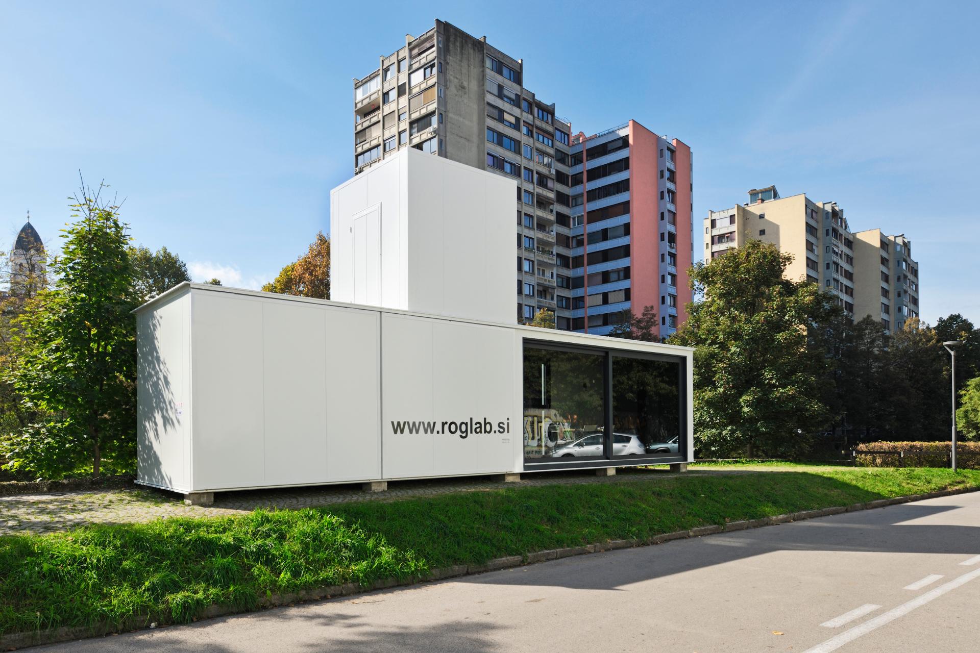 RogLab is based in a stylised white container designed by the Slovene architect, Jure Kotnik. Small pavilions like ours are often used to introduce larger urban development projects, since they communicate something of both the project and the future of the location. In accordance with the plug and play principle, ISO containers are often used for this, since they are easy to move and quick to install. The container form also communicates the transitory nature of the built environment and encourages the public to see the city as a constant work in progress at a time of rapid social, environmental, economic and technological change. Unlike many similar pavilions, RogLab does not communicate its plans (the makeover of the almost 9000m2 former Rog factory) by means of models, sketches and presentations, but instead addresses the public and future users by providing content in the form of a creative manufacturing laboratory.