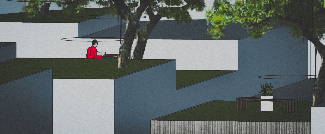 Infinite Circulation is a metaphor about the circle of life. It is about living the moment and enjoying the ride as we live it. The ring as a symbol of infinity and eternity but that protects an oasis of green soil, an urban hideout for pausing this accelerated rhythm that feels like a vortex in the modern life. In a way this space invites you in its core to take a break, but also if you like the ride, better to enjoy it while you're at it.
