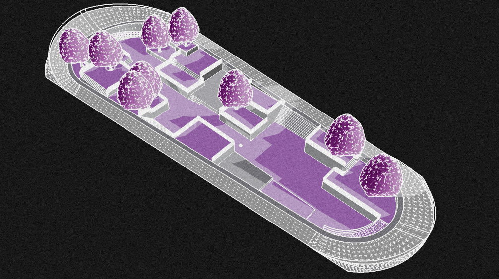 In the center of the velodrome, with hanging gardens, different modules deconstruct and reconfigure the topography, invites you to stop, and to take a break when needed among the different micro situations that are generated on different levels, inside a "macro structure" aka the velodrome and the whole system of bike and pedestrian lanes that invites you to move constantly.