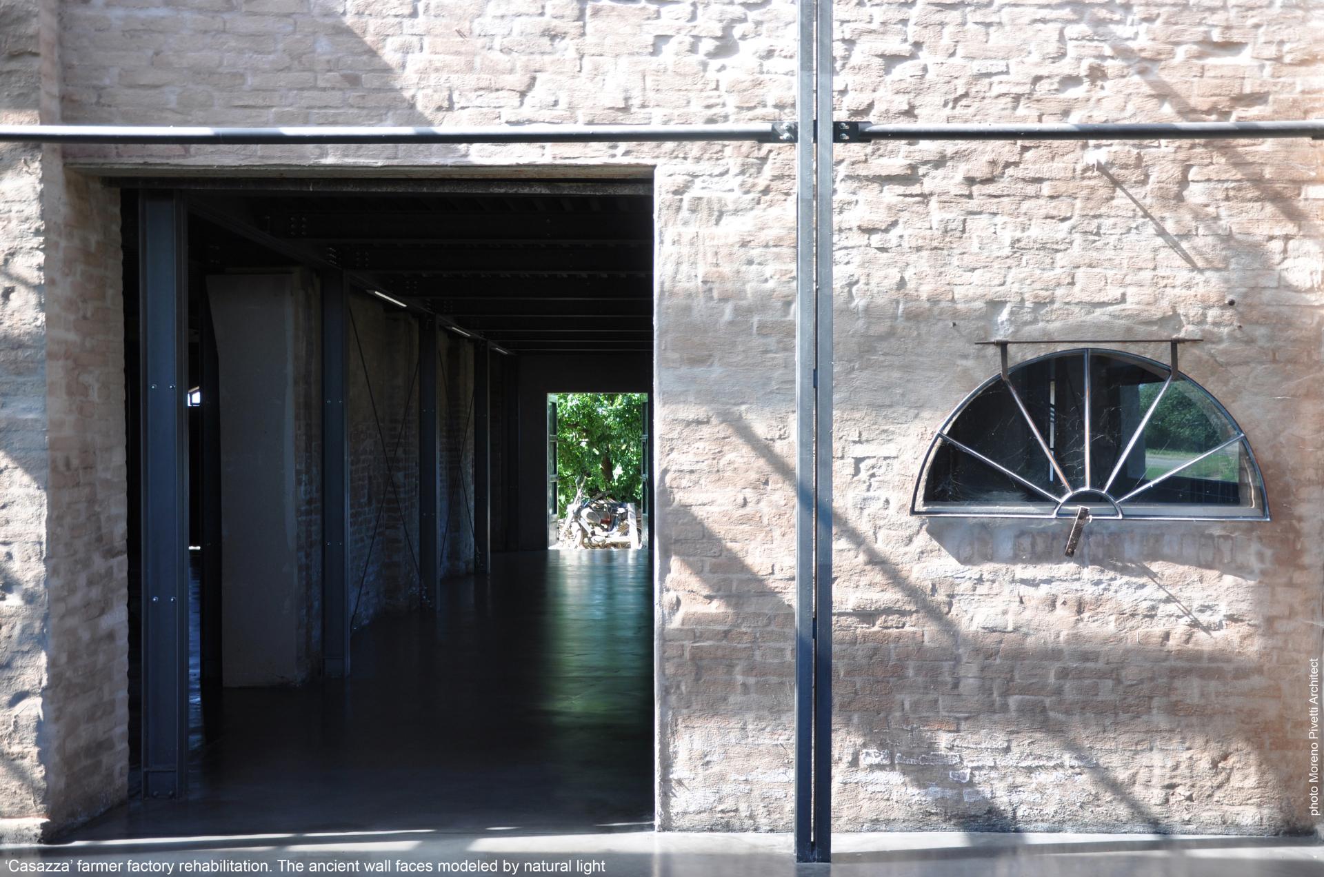 After having traveled a large stretch of that Emilian coutryside, unmistakable in its uniform expanse and measured at the most by scattered rows of poplars, upon arriving here one suddenly has the impression of being where time has stopped, forcibly kidnapped by that ‘mythical past’ narrated by Bernardo Bertolucci in “Novecento”. The building was the production section of an ancient agricultural court, called “Corte Casazza”, dating back to the mid-nineteenth century. The project involved the complete recovery of the building, with minimal and measured interventions on the external envelope. The restoration of the walls was carried out with the aim of highlighting the successive stratifications that shaped them, carrying out selective excavations and what Carlo Scarpa called “creative demolitions”. The new insertions, chromatically neutral, exhibit the silent commentary on the ancient envelope that welcomes them. The intervention also included the reconstruction of the most recent module facing north; the volumetric integration respects the alignments of the existing building, harmonizing its reintegration. A linear skylight on the roof declares the separation between the two buildings, returning inside the unitary perception of the ancient vestments, heated and shaped by the zenith light.Entering the farmhouse, one relives the memory of the ancient stable recovered to the original wall faces and measured by columns rebuilt with an iron core. In the upper part, Nature dominates. Where once there was the barn, an open, flexible space now extends, marked by the trajectories of natural light draw by the brick diaphragms (“jealousies”). The visual-illuministic narrative projects and weaves multiform plots on walls and floors, becoming the spatial stamp of the recovered barn. The envelope-diaphragm transfigures one of the primary elements of nature – Light – into the empathy of space, a place in which to cultivate - as Sir Brewster well knew – the pleasantness of vision.